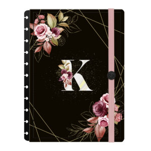 AcessóriosCapa e Contracapa Iscool Disc Monograma Floral Preto E Rosa Letra K