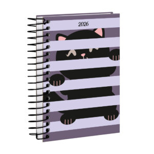 Agenda MiniAgenda Mini 2026 Listras Lilás Gato Preto