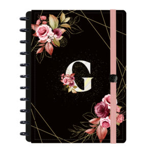 Caderno de DiscoIscool Disc Prime Monograma Floral Preto E Rosa Letra G