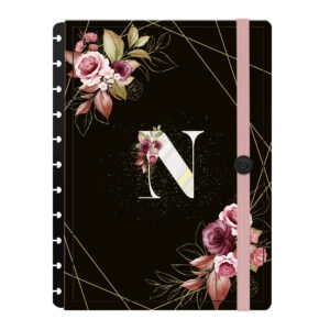 AcessóriosCapa e Contracapa Iscool Disc Monograma Floral Preto E Rosa Letra N