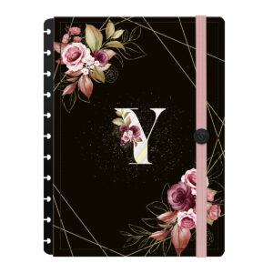 AcessóriosCapa e Contracapa Iscool Disc Monograma Floral Preto E Rosa Letra Y