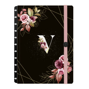 AcessóriosCapa e Contracapa Iscool Disc Monograma Floral Preto E Rosa Letra V
