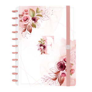 Caderno de DiscoIscool Disc Prime Monograma Floral Branco E Rosa Letra F