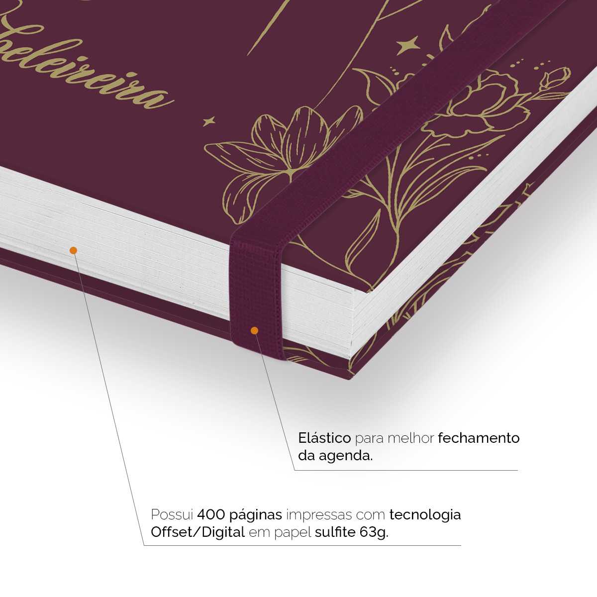 Elástico para fechamento da capa da agenda.