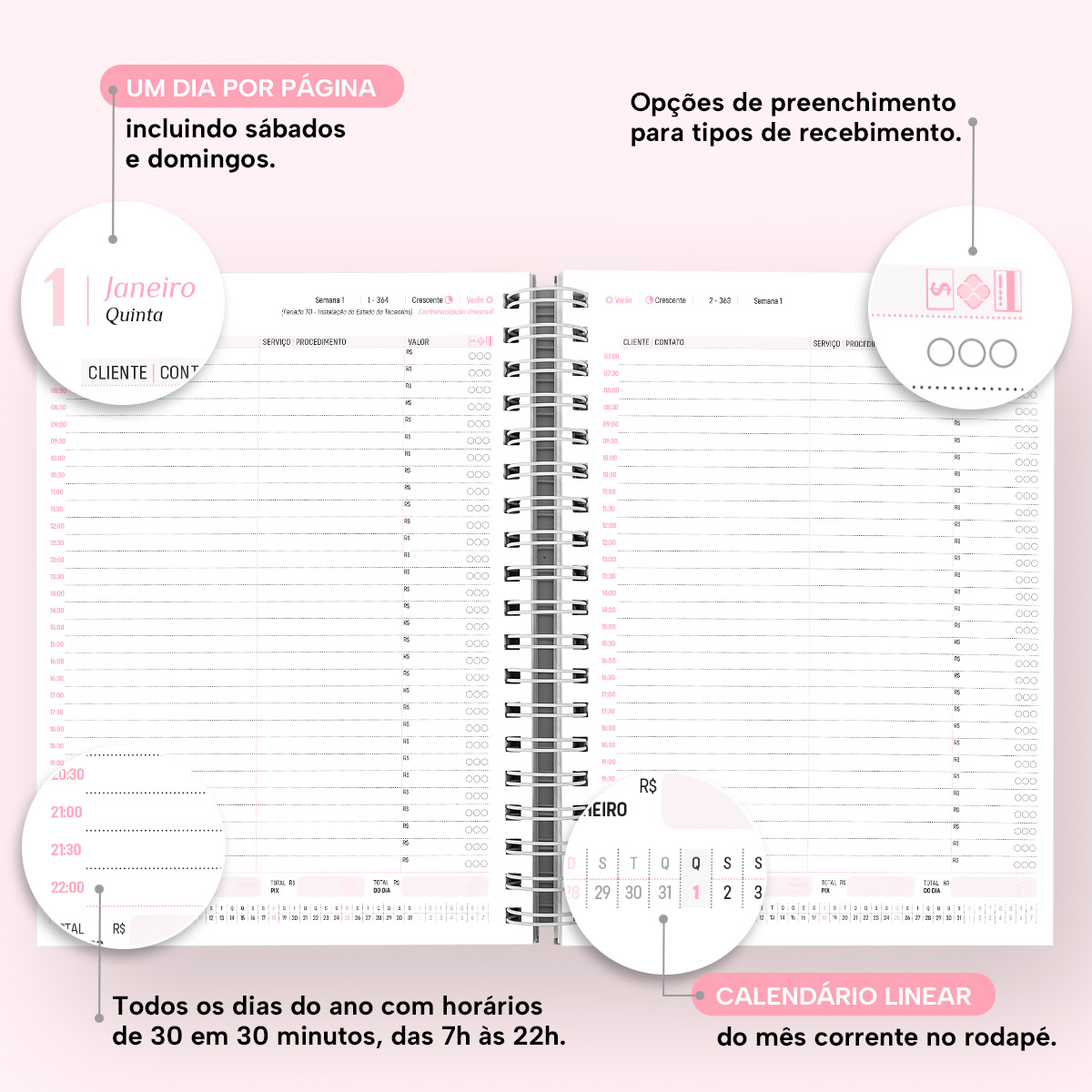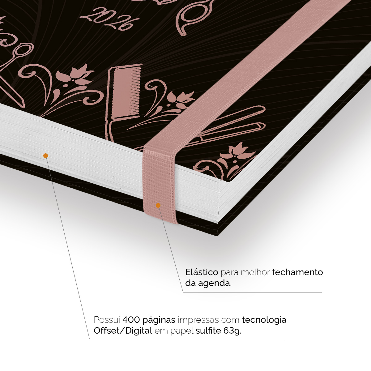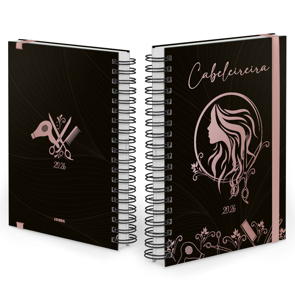 Agenda Comercial Plus 2026 Cabeleireira Preto Rosê