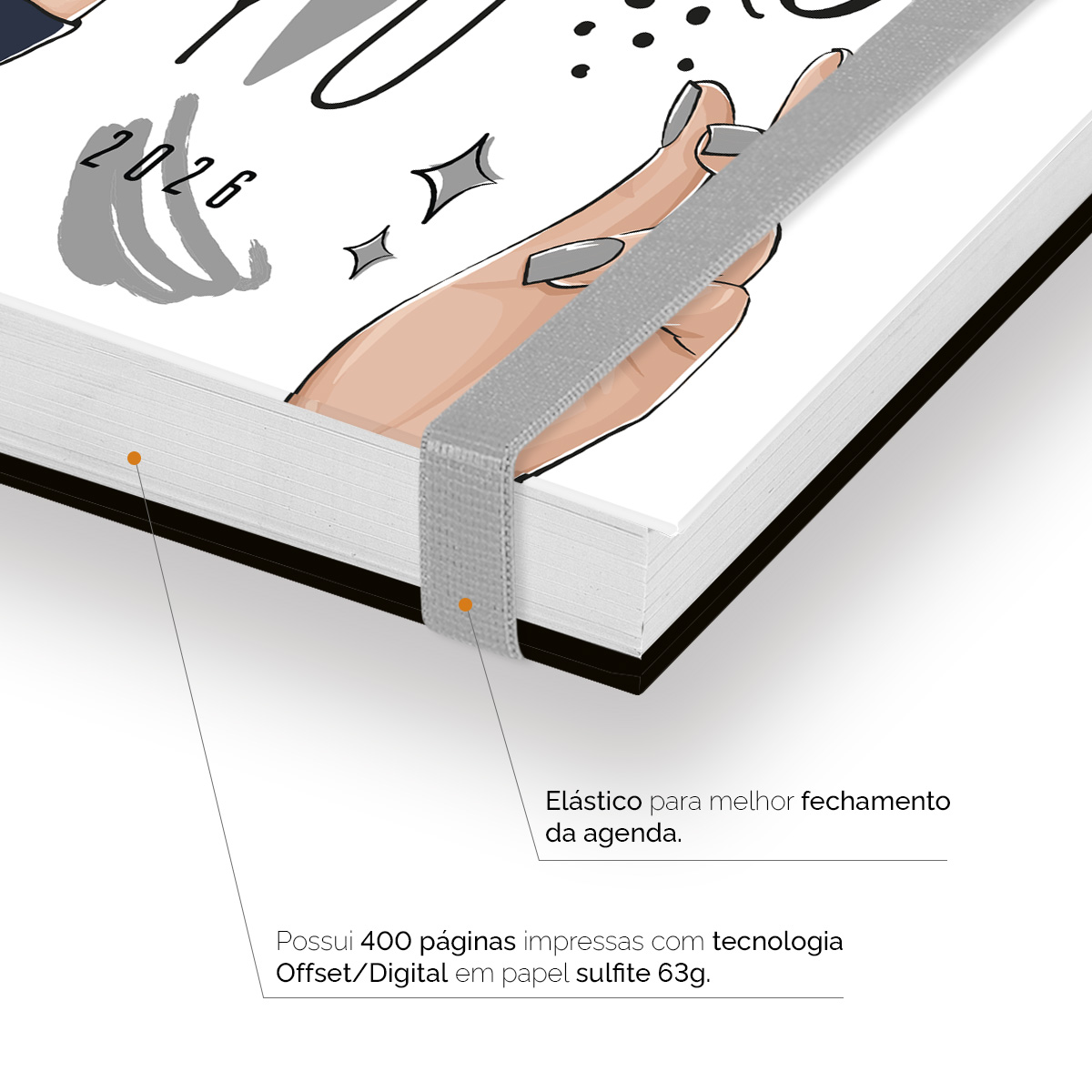 Agenda Comercial Plus 2026 Nail Designer Art Prata