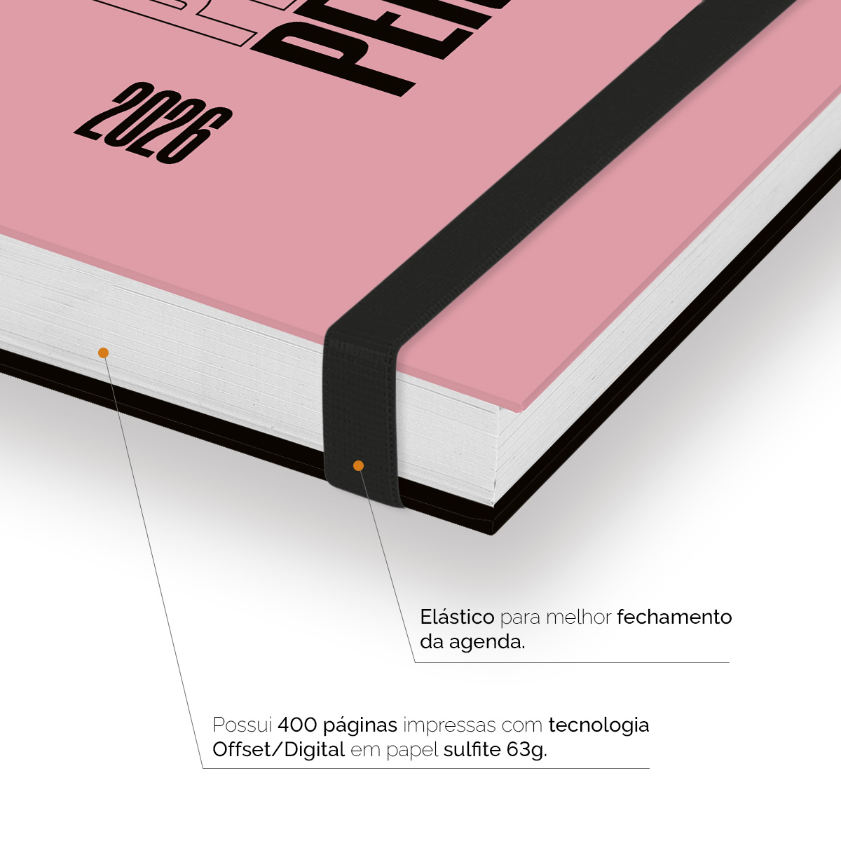 Elástico para fechamento da capa da agenda.