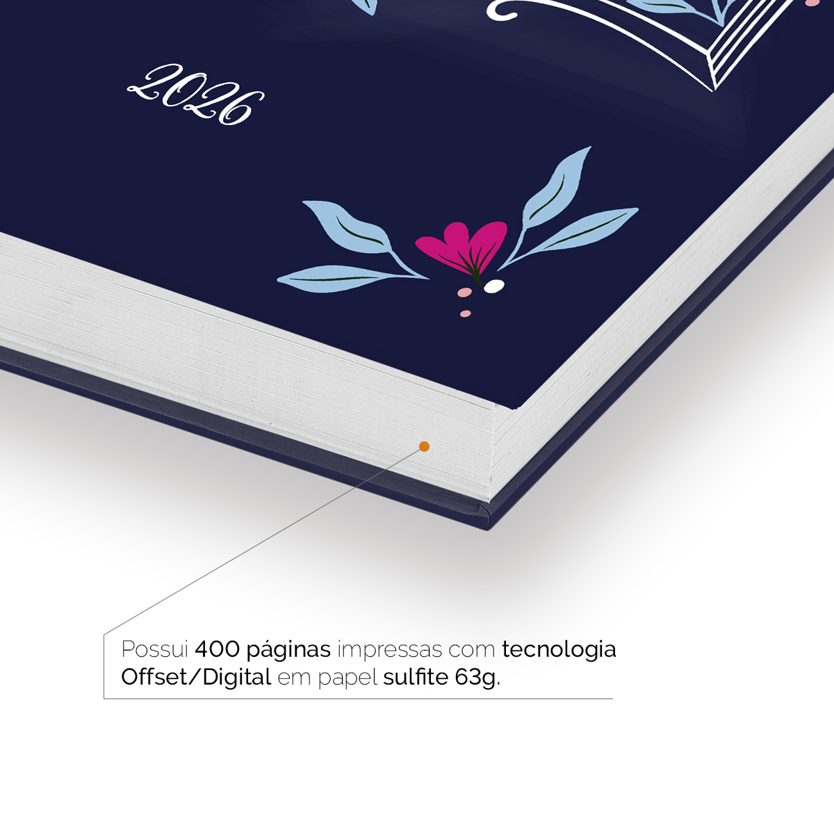 Todas as datas (dias da semana e finais de semana) ocupam páginas inteiras, inclusive sábados, domingos e feriados. Com o tamanho de 18x24,5 cm, ela é 30% maior que os modelos tradicionais.