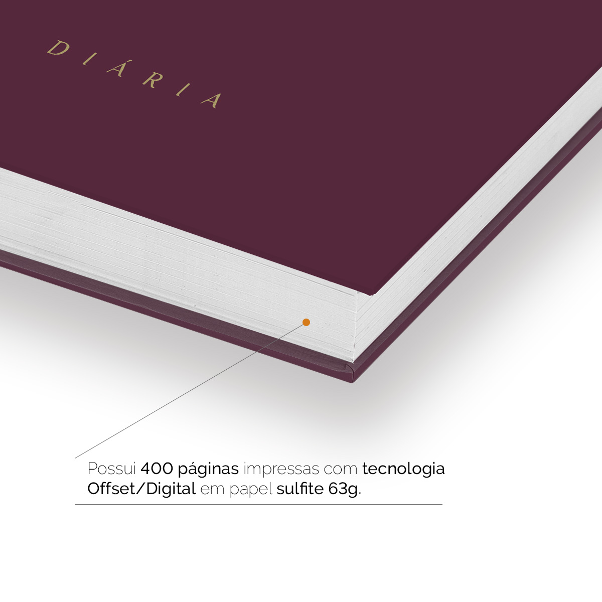 Páginas internas (miolo) impressas em papel sulfite (offset) 63g branco no tamanho 18 cm de largura por 24,5 cm de comprimento.