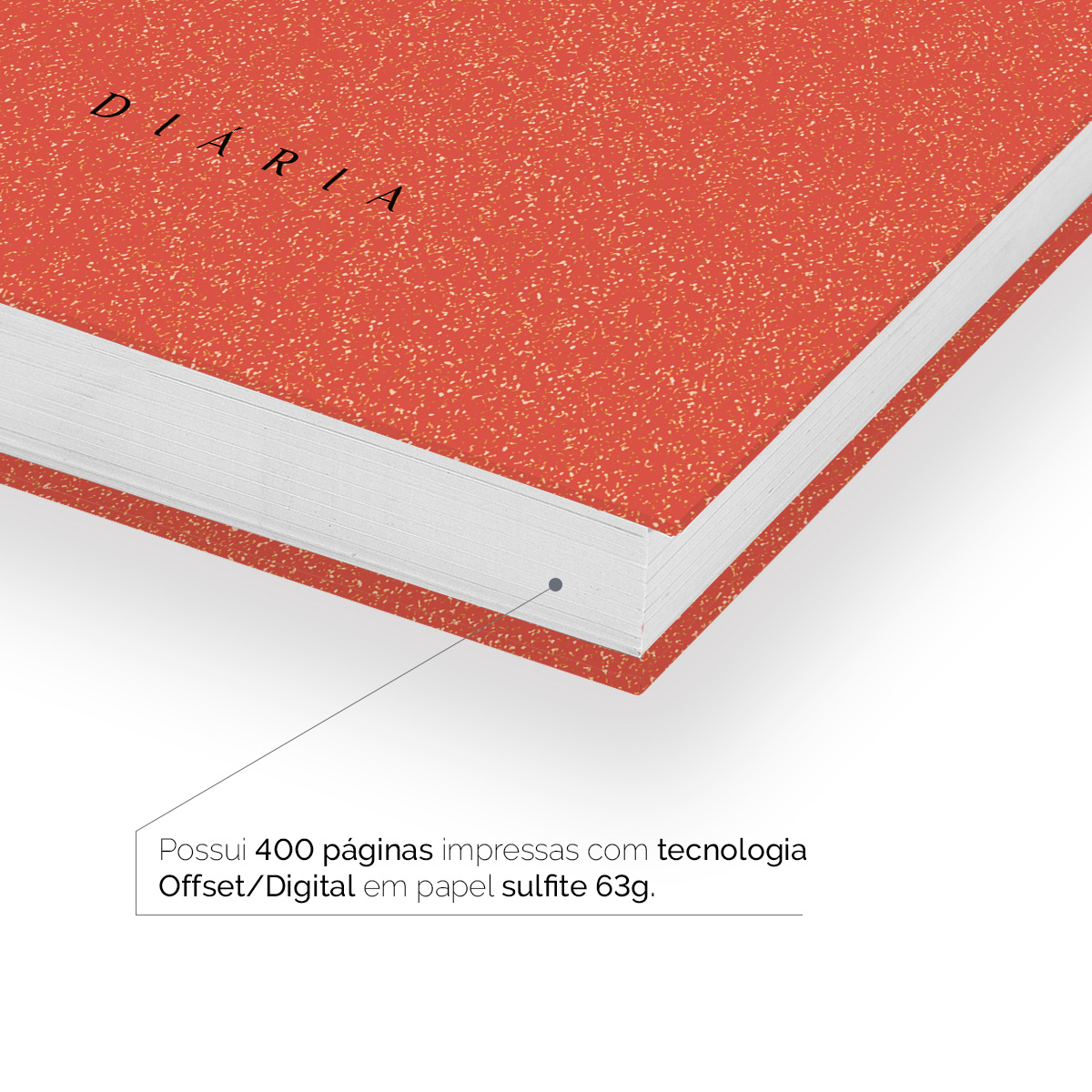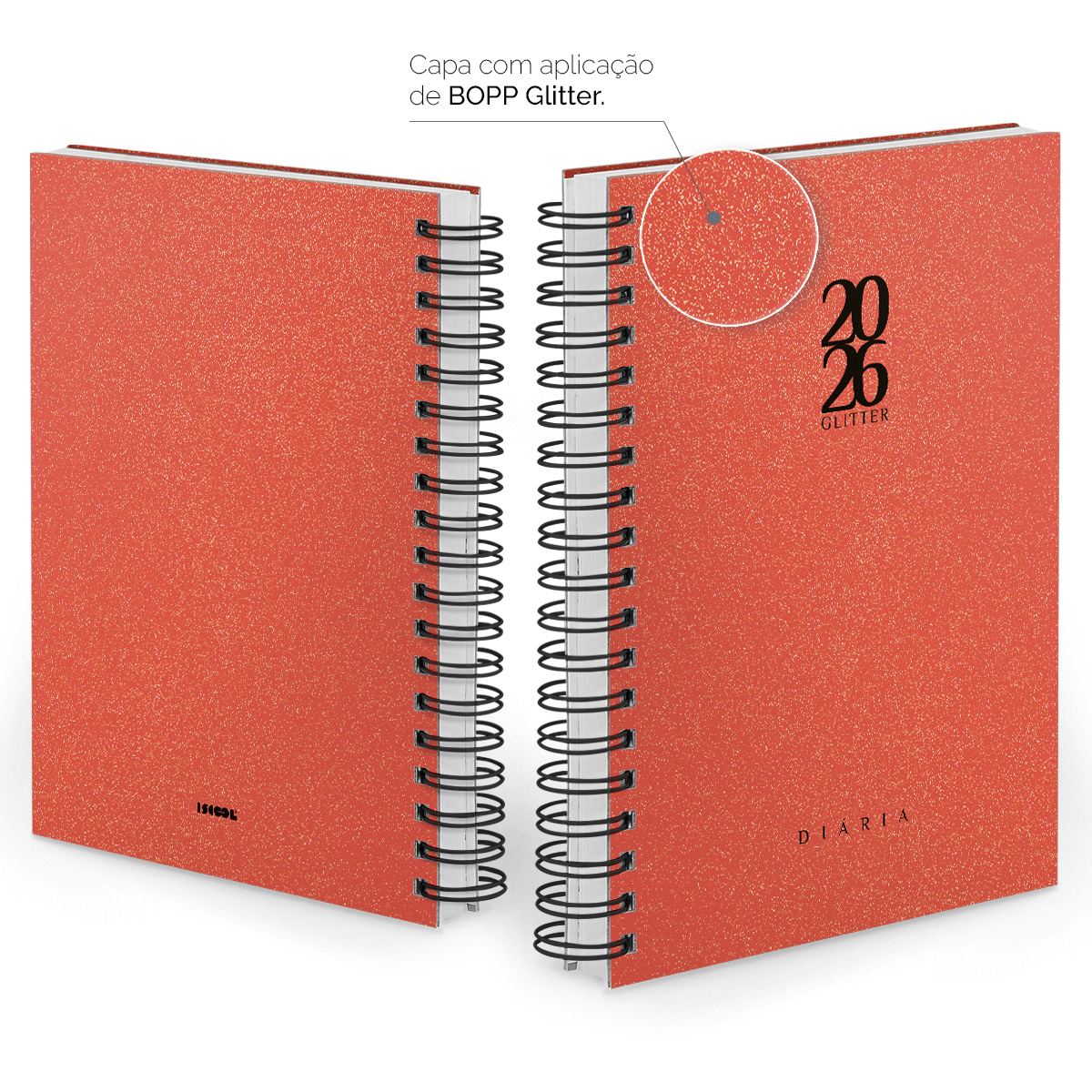 Nossa agenda possui um acabamento especial com BOPP glitter que proporciona o efeito de brilho glitter que se destaca sob luz intensa, e o melhor de tudo é que o glitter não solta!