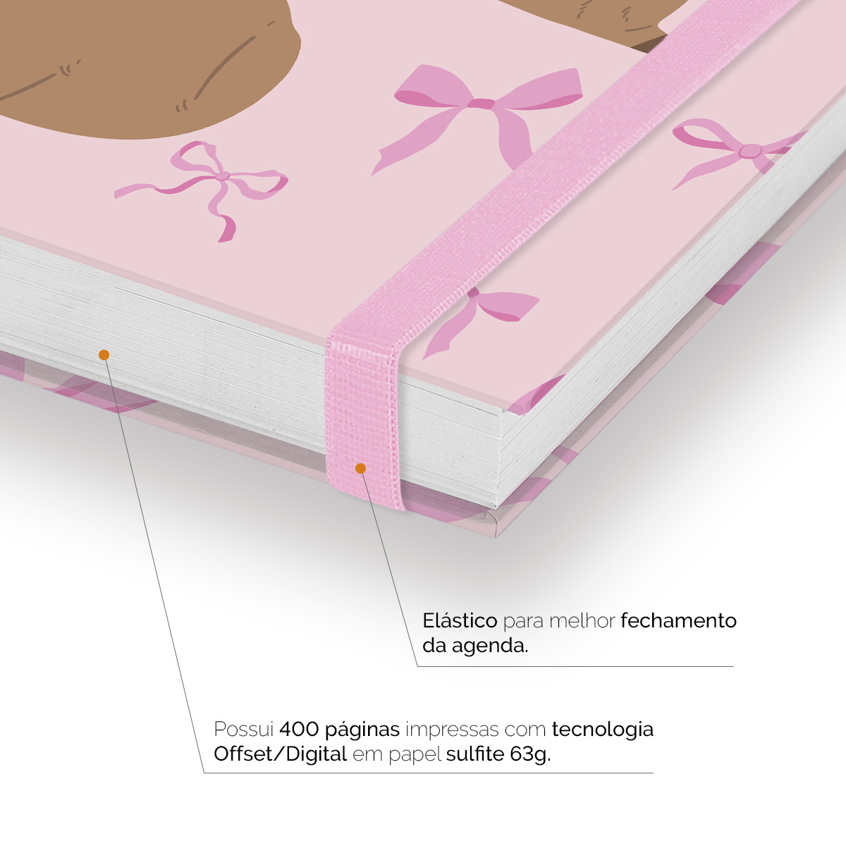 Elástico para fechamento da capa da agenda.