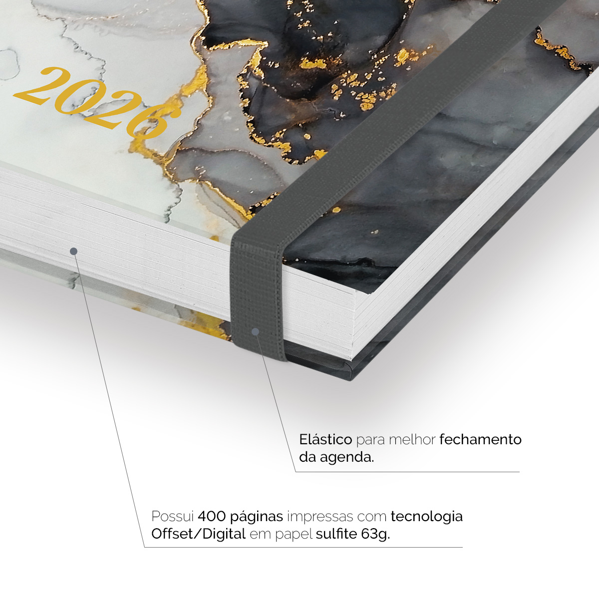 Agenda Diária Plus 2026 Mármore Cinza