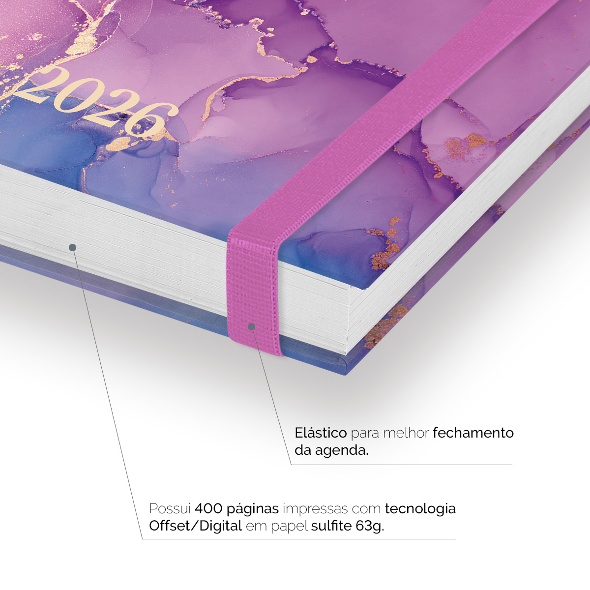 Elástico para fechamento da capa da agenda.
