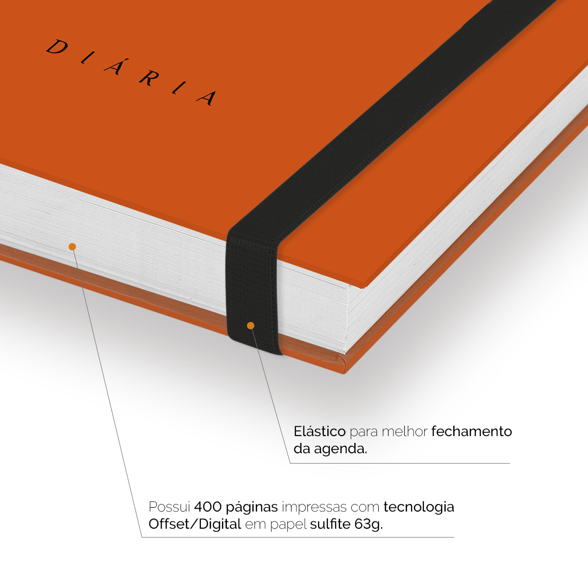 Elástico para fechamento da capa da agenda.