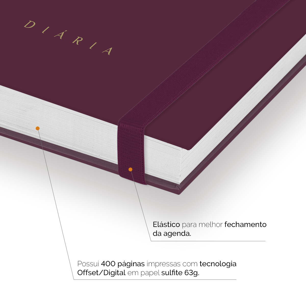 Elástico para fechamento da capa da agenda.
