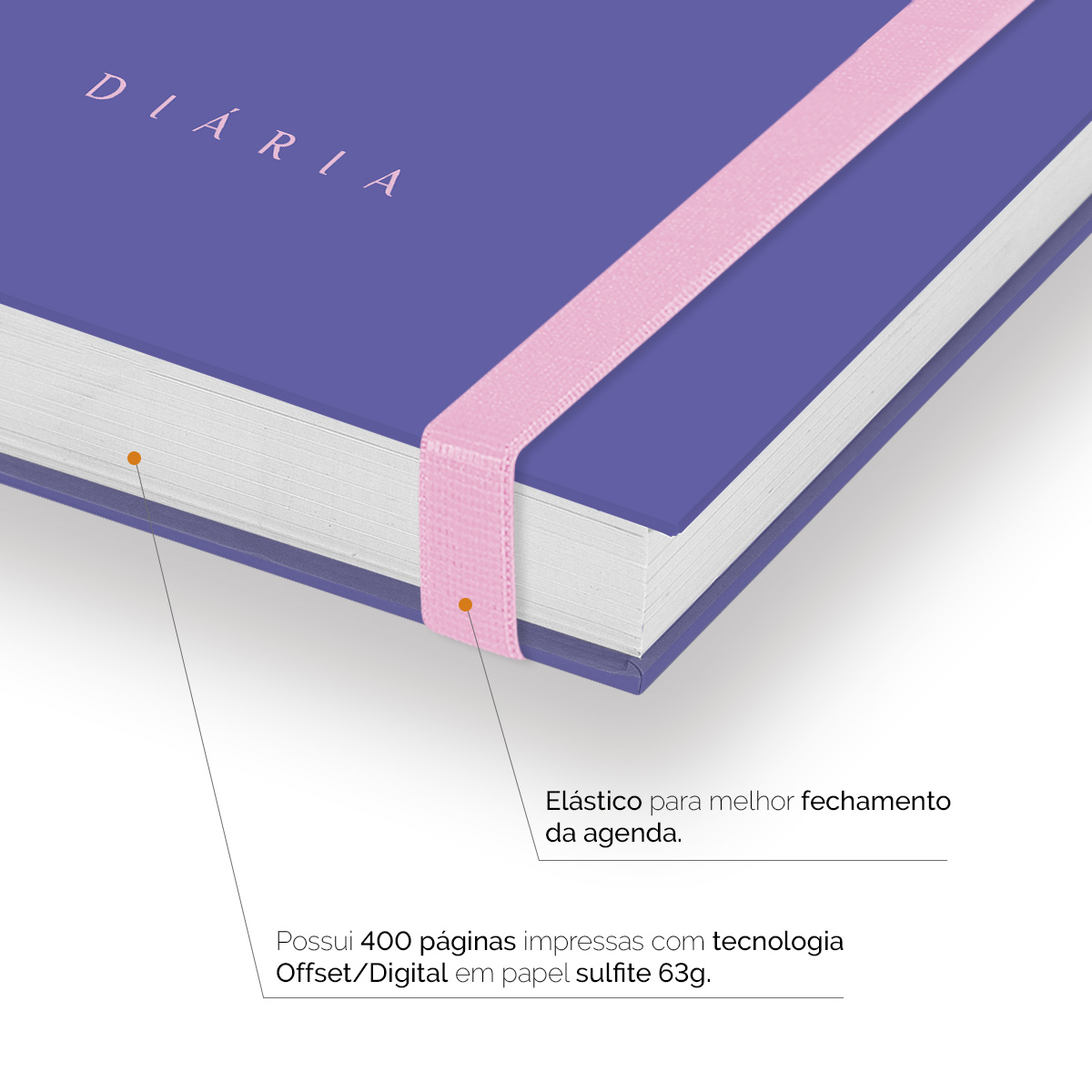 Elástico para fechamento da capa da agenda.