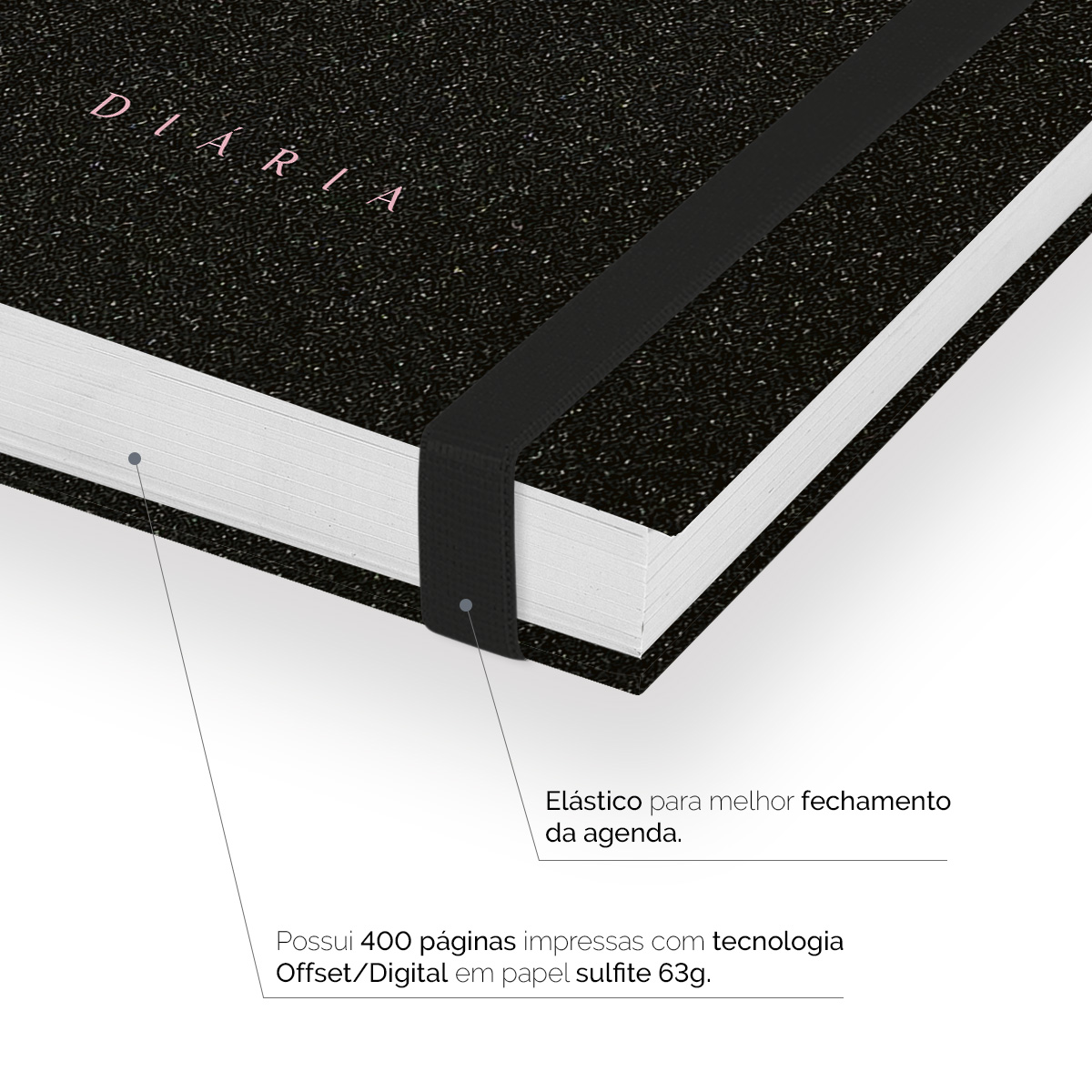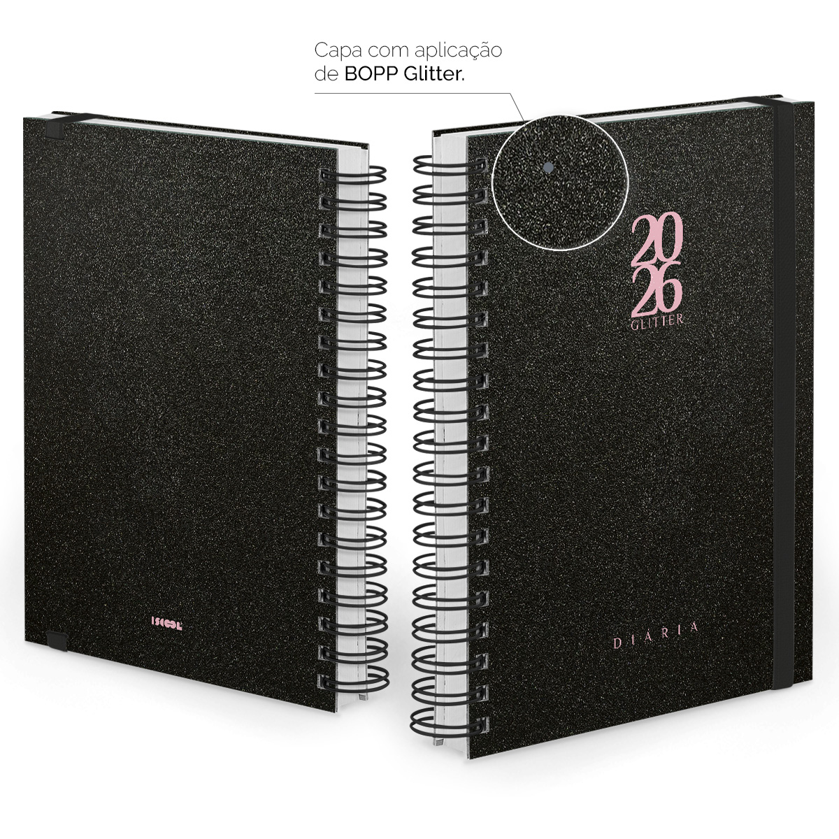 Agenda Diária Plus 2026 Solid Glitter Preto E Rosa