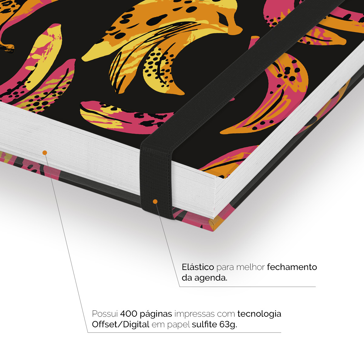Agenda Diária Plus 2026 Tropical Bananas Preta