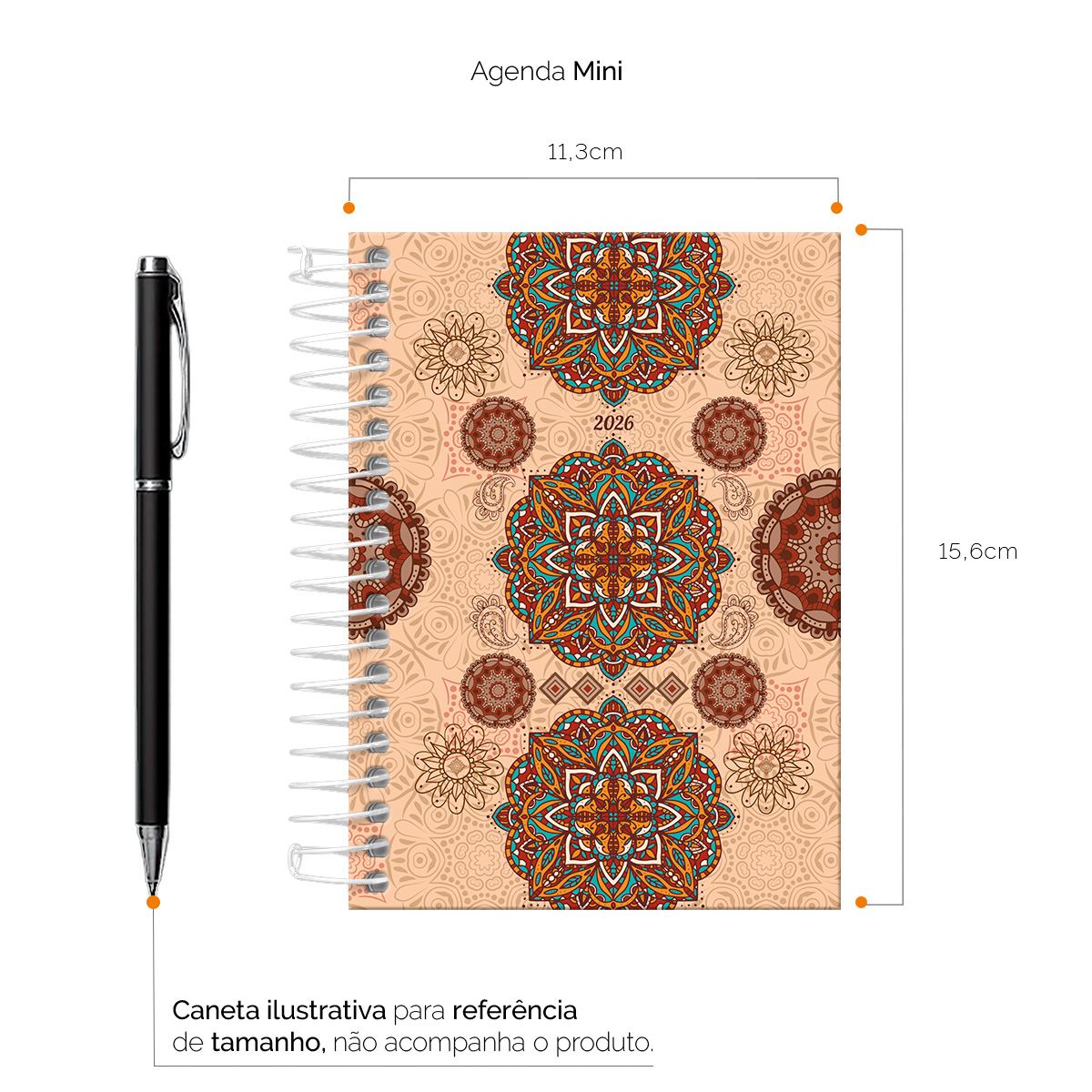 Agenda Mini 2026 Boho Mandala Vermelho e Nude