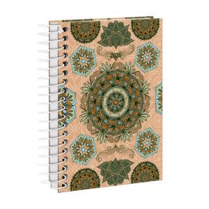 Encadernada com espiral de arame revestido.