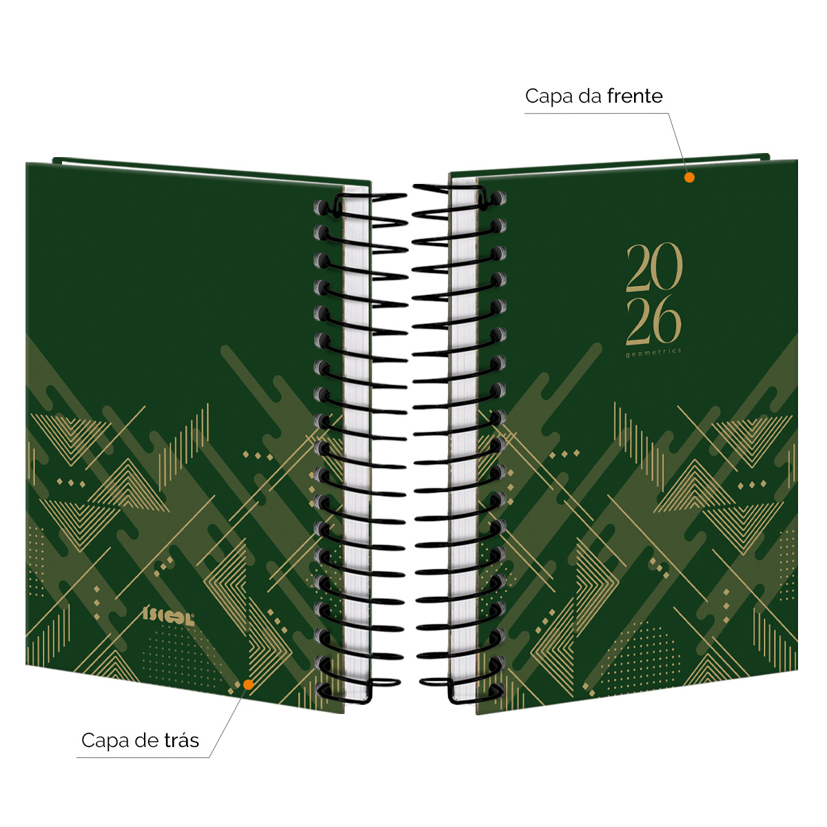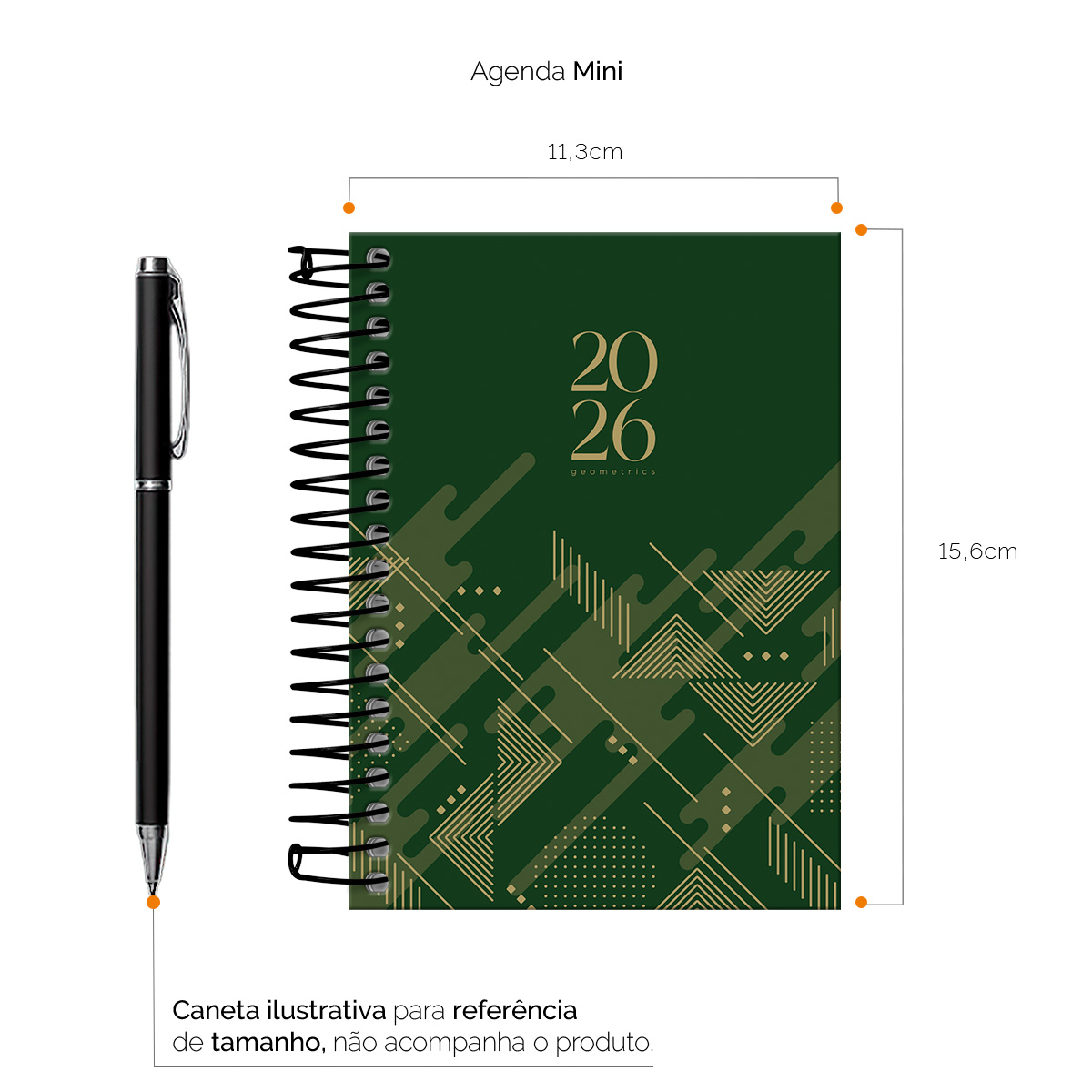 Agenda Mini 2026 Geometrics Triângulos Verde Militar