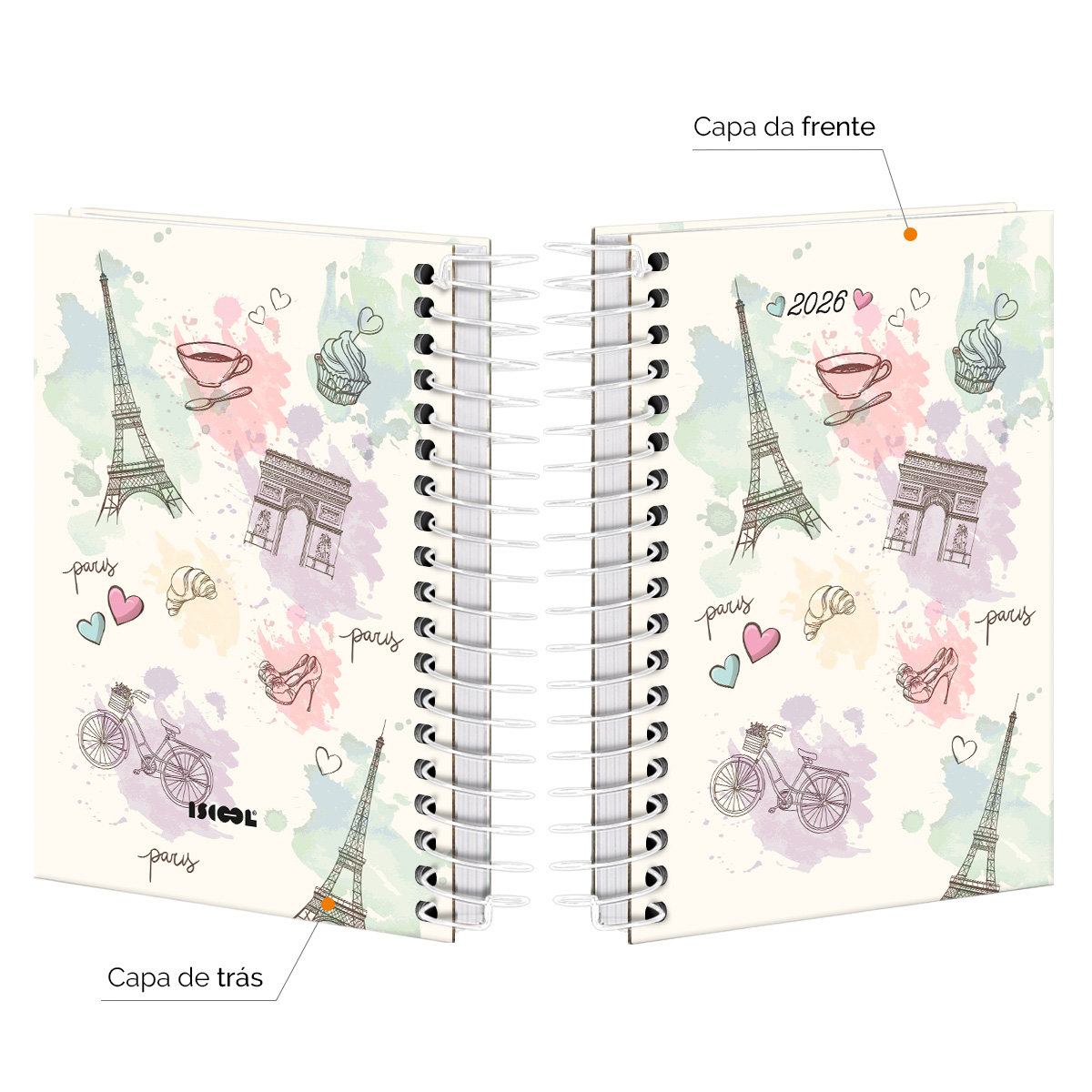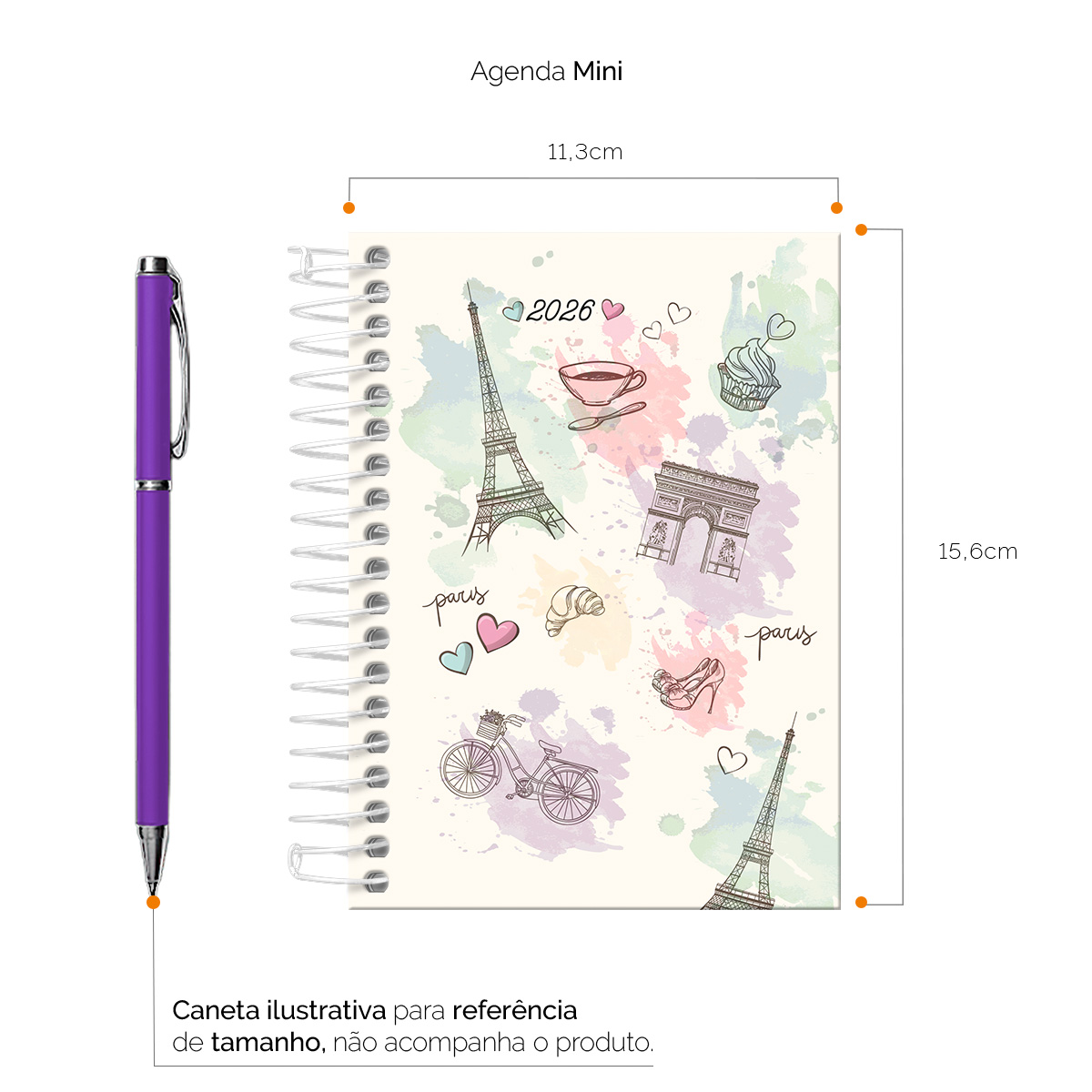 Agenda Mini 2026 Países Paris Aquarela Torre Eiffel