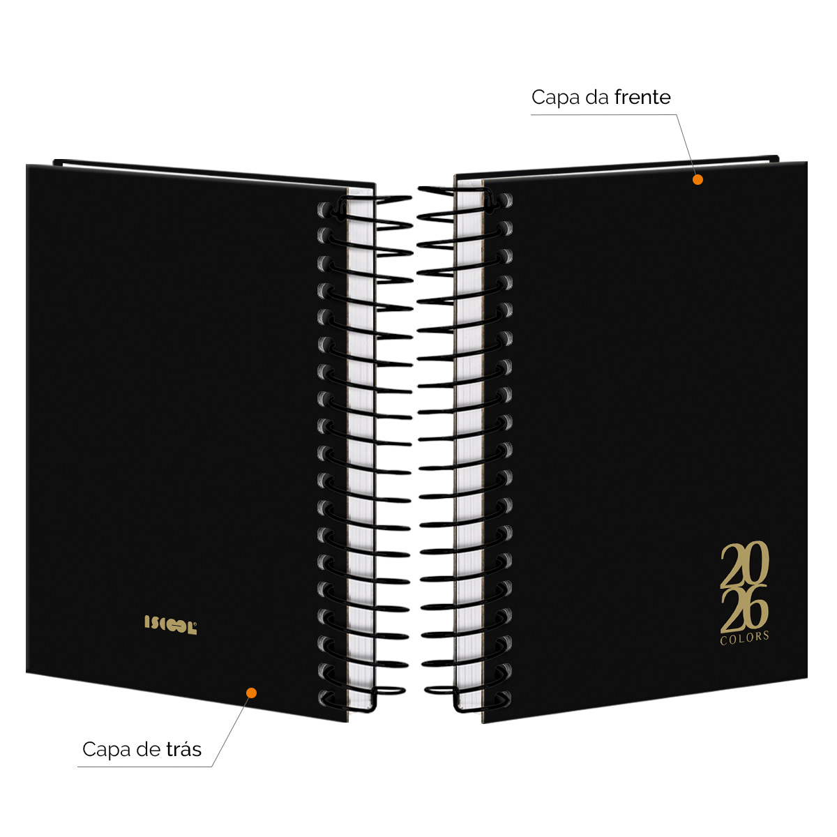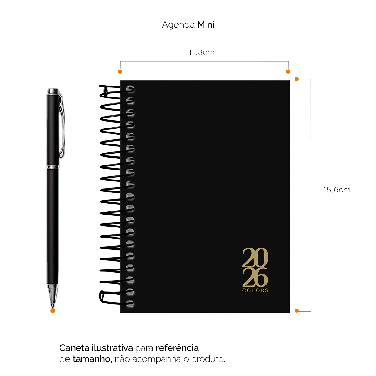 Agenda Mini 2026 Solid Colors Preto Ouro