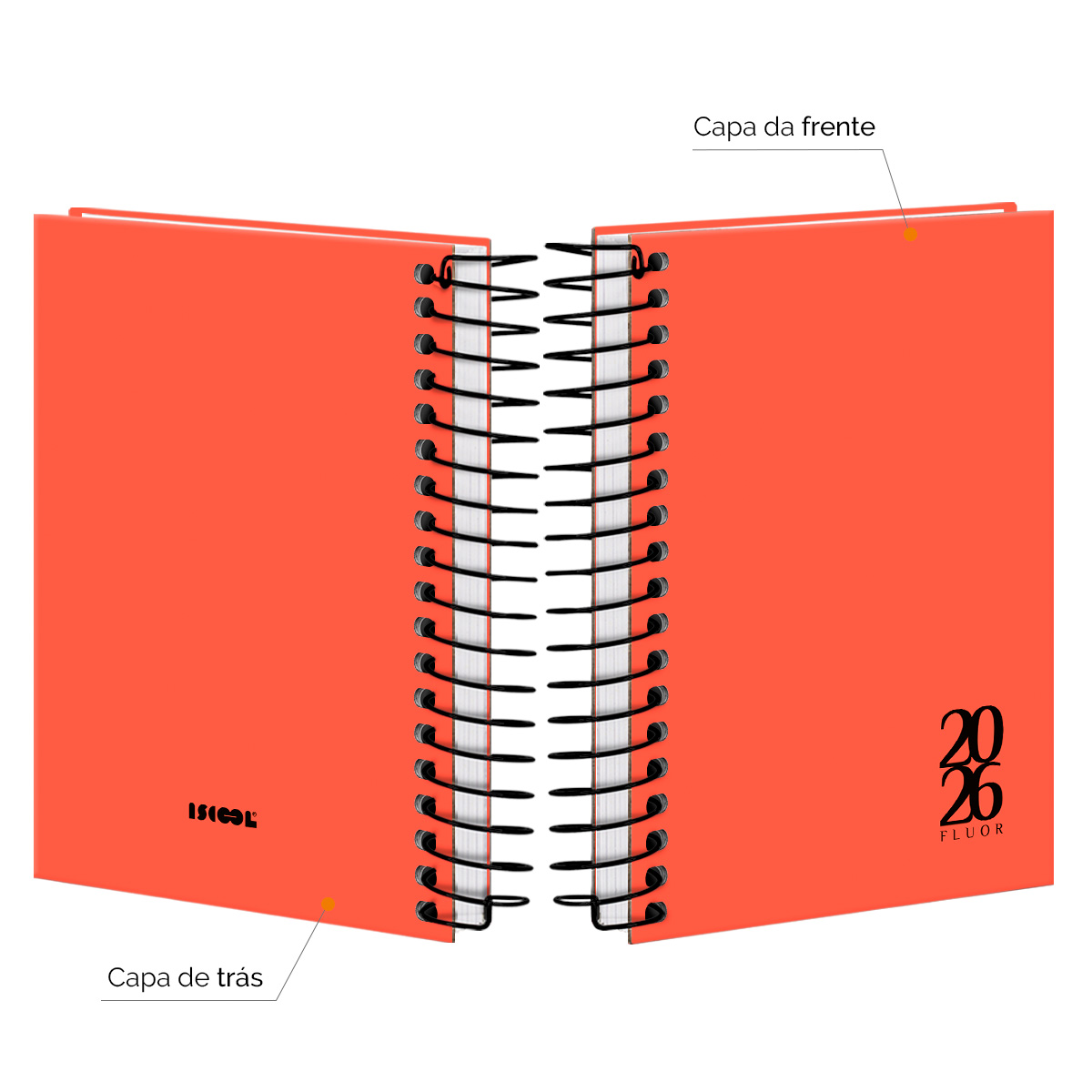 Encadernada com espiral de arame revestido.