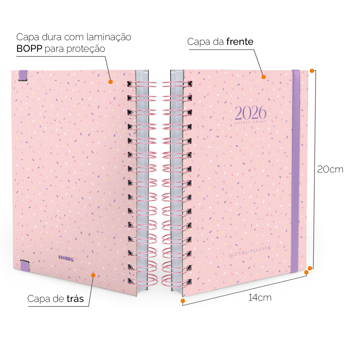 Agenda Planner Diária 2026 Colors Sweet Confete Rosa