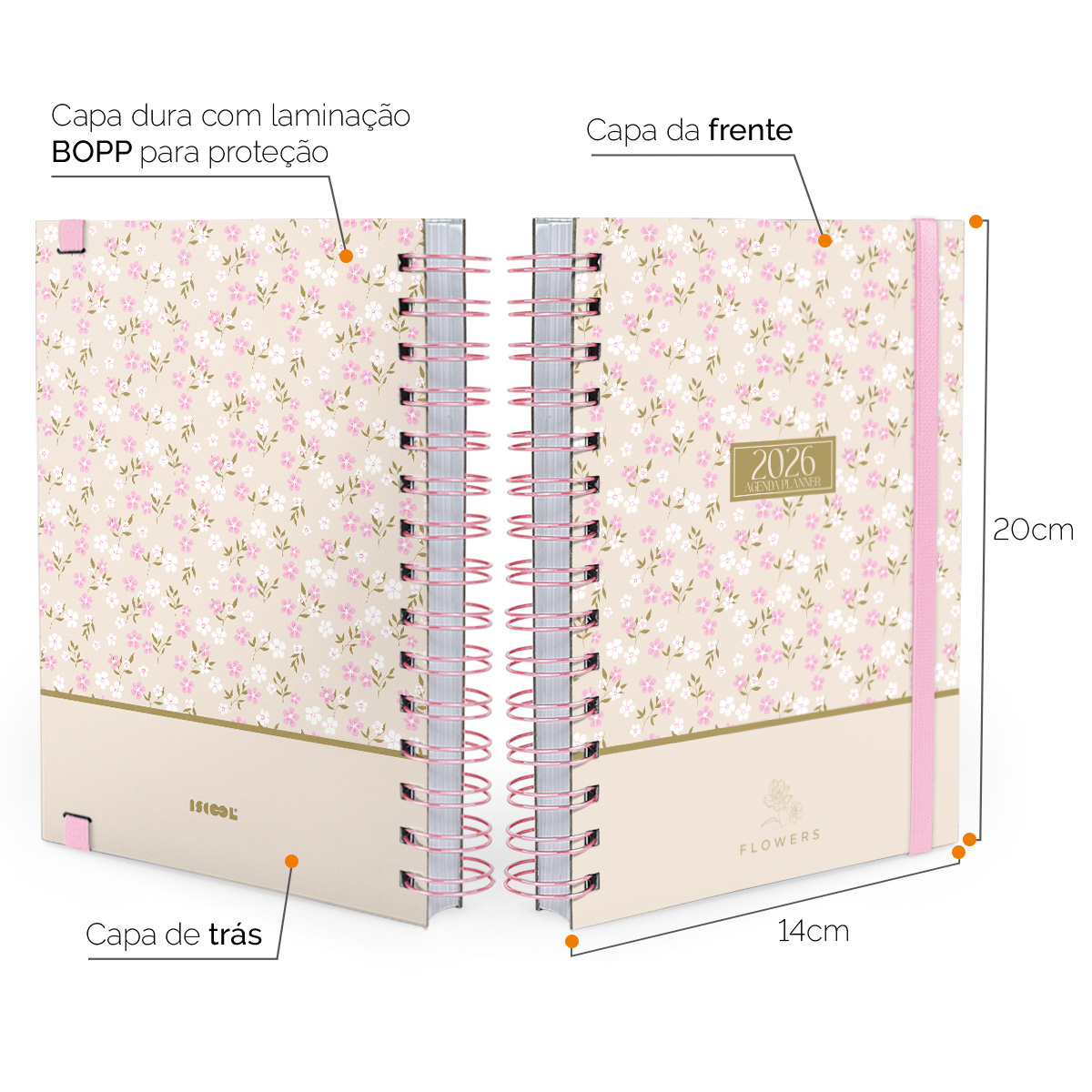 Com tamanho de 14 x 20 cm (próximo ao A5), esta agenda se destaca pelo formato de 1 dia por página, incluindo sábados, domingos e feriados. As linhas possuem marcação de horários a cada 30 minutos, das 7h às 21h30, permitindo uma organização completa do dia. Além disso, cada página oferece espaço para listar suas tarefas do dia (to-do), monitorar hábitos diários e registrar outras anotações importantes.