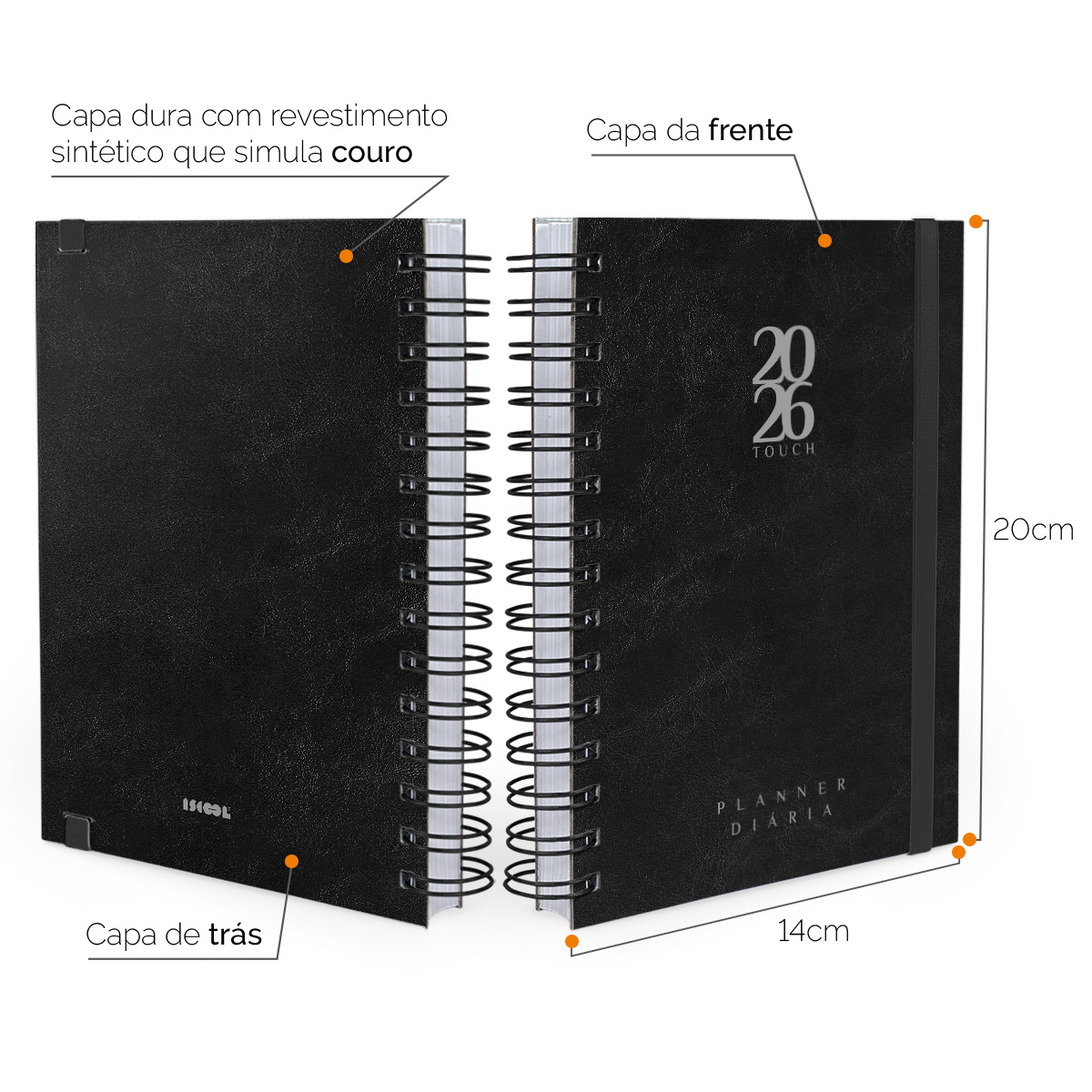 Agenda Planner Diária 2026 Solid Touch Couro Preto