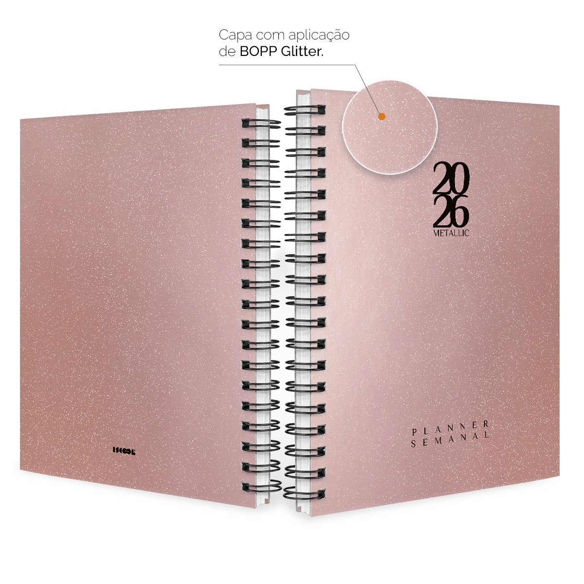 Agenda Planner Semanal 2026 Solid Glitter Metallic Rose Gold