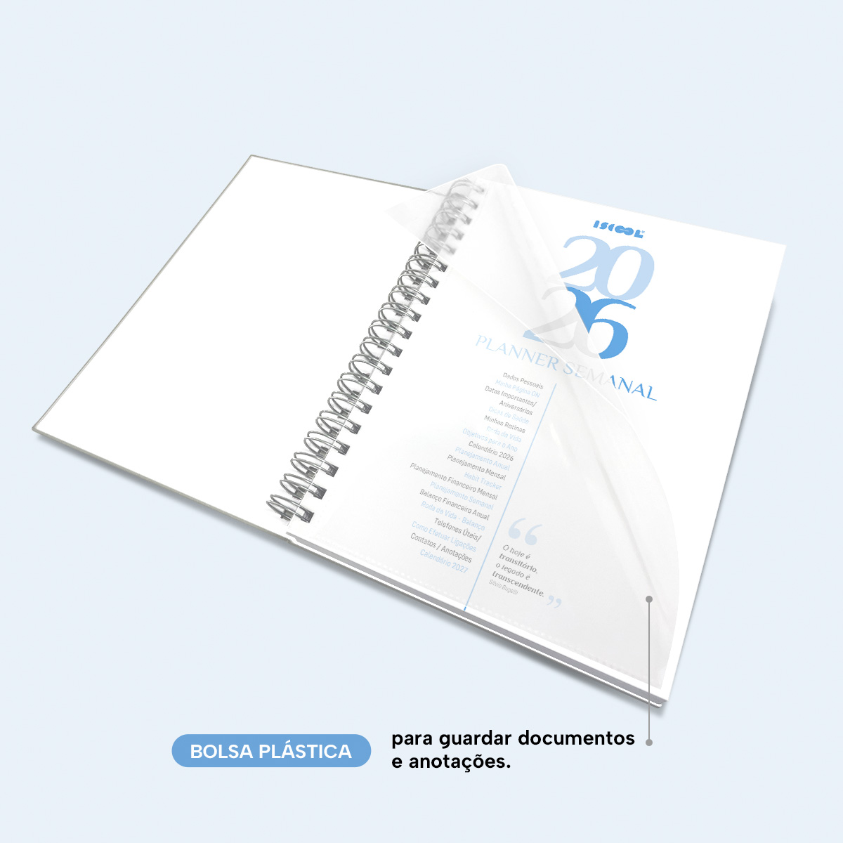 A agenda planner semanal plus da Iscool é perfeita para uso diário, seja na empresa, escritório, salão, clínica, escola, faculdade ou até mesmo em casa. Com ela, você pode agendar compromissos, eventos, tarefas, lembretes e contatos, tornando sua rotina mais funcional e produtiva.