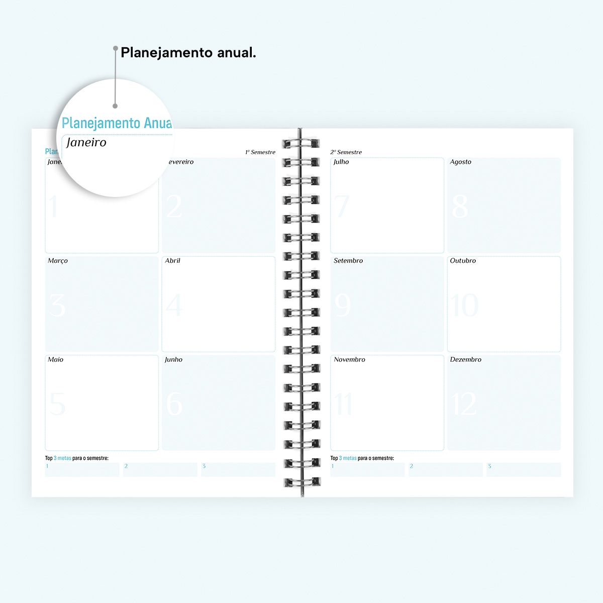 No início de cada mês, há um planejamento mensal, facilitando visualmente as suas principais anotações, um “Habit Tracker” para você desenvolver novos hábitos ou controlar os mais importantes, e ainda um planejamento financeiro, facilitando o controle das suas receitas e despesas.