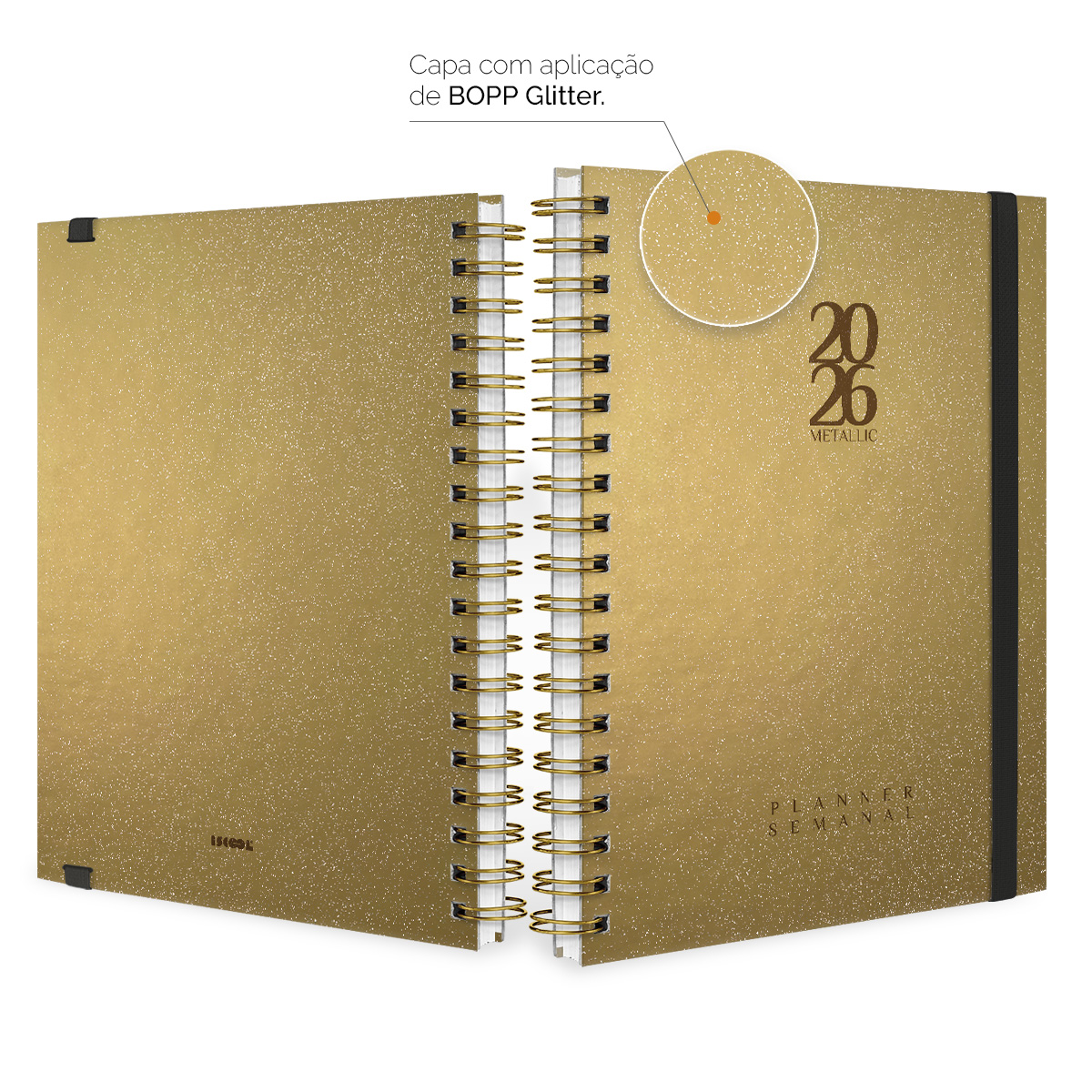 Agenda Planner Semanal Plus 2026 Solid Glitter Metallic Ouro
