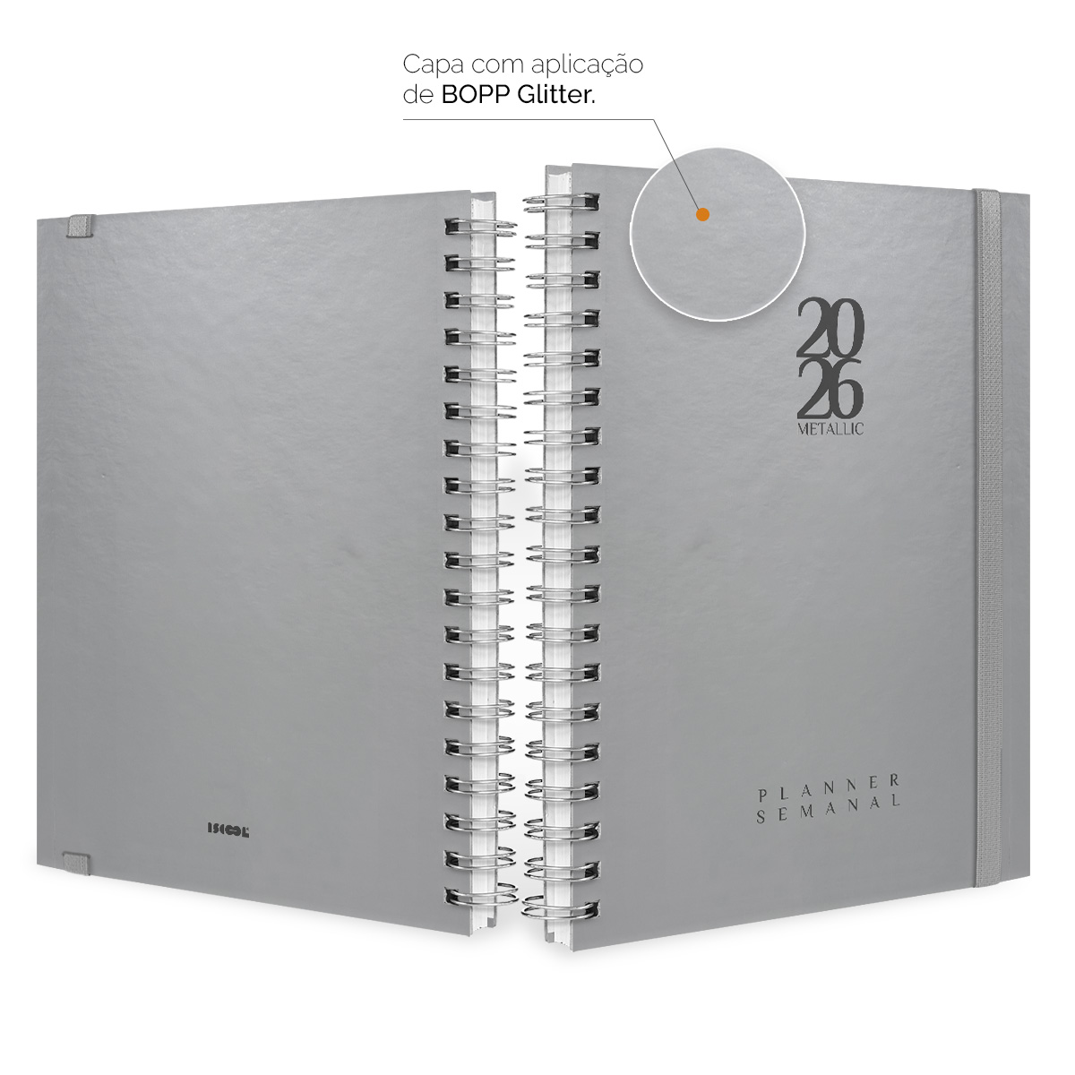 Agenda Planner Semanal Plus 2026 Solid Metallic Prata