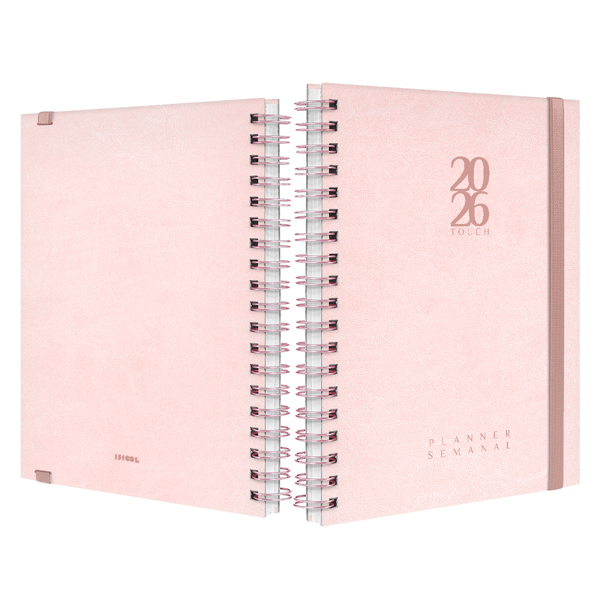 Agenda Planner Semanal Plus 2026 Solid Touch Tipo Couro Rosa
