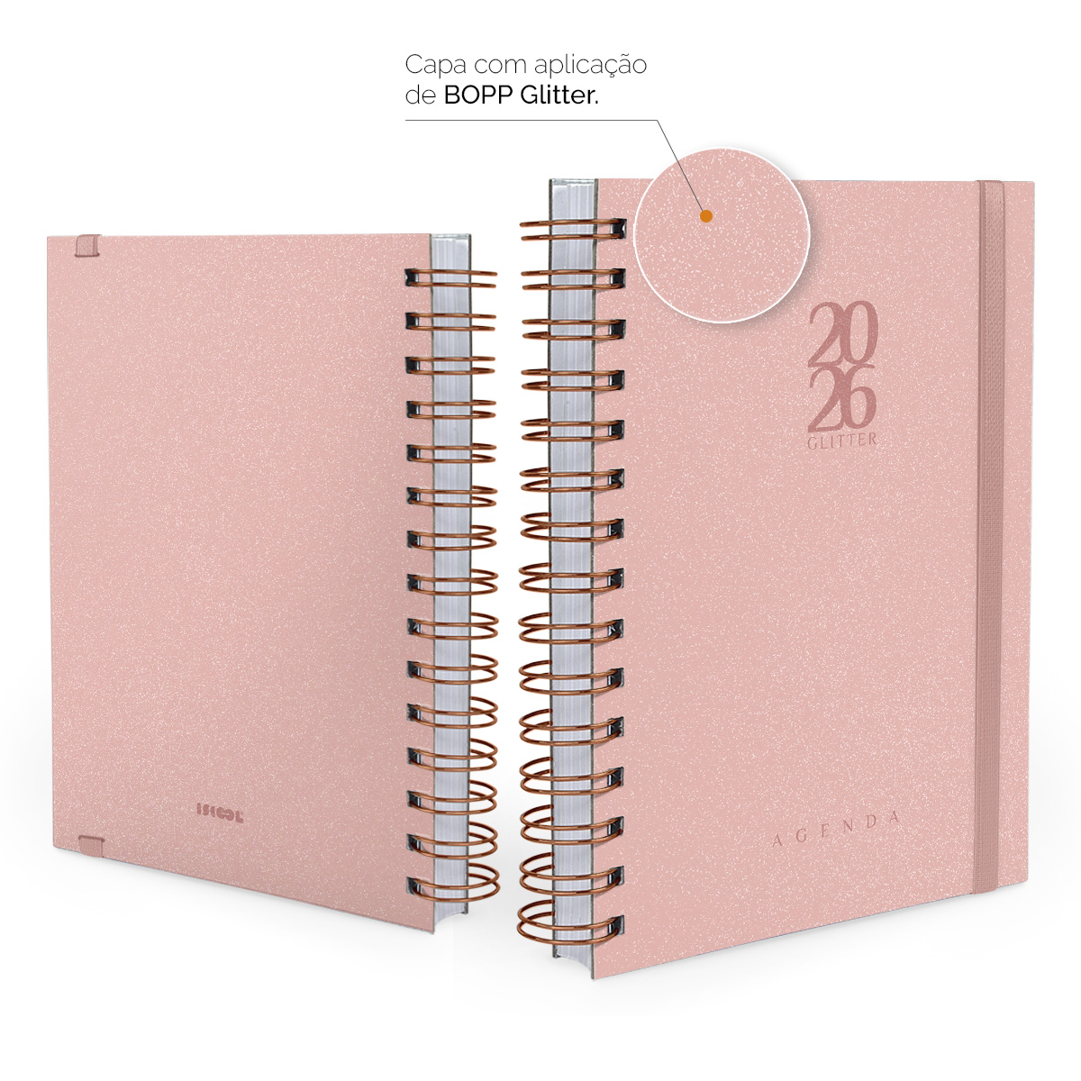 Agenda Plus 2026 Solid Glitter Cores Rosê