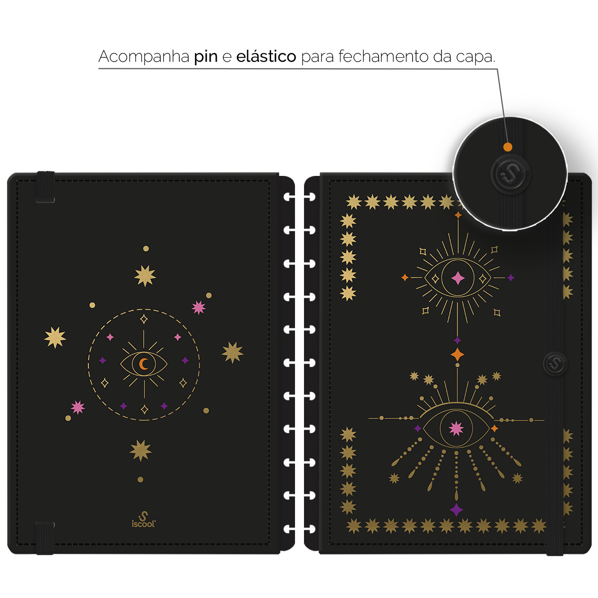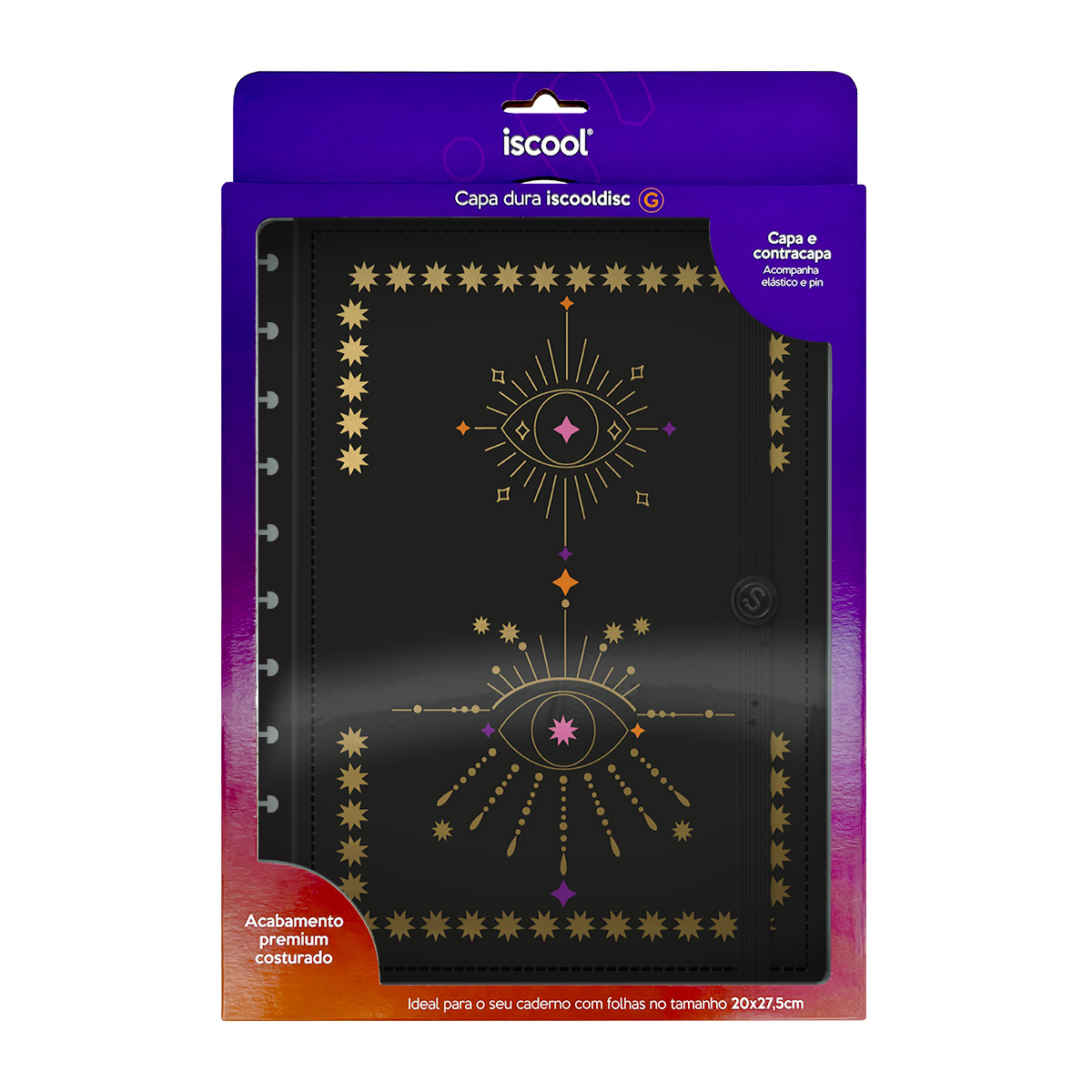 Com as capas iscool Prime, você pode renovar a “cara” do seu caderno de disco sempre que desejar! A caixa inclui capa e contracapa, além de extras que fazem toda a diferença: elástico para fechamento da capa, folha de dados e calendário.