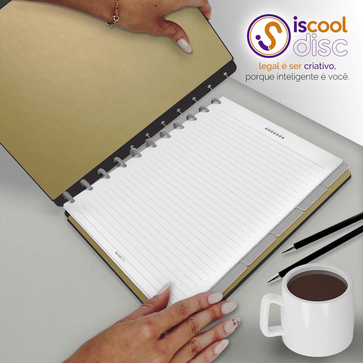 Com furos no formato de "cogumelo", é compatível com outros fabricantes de cadernos de disco, inclusive da marca Caderno Inteligente®.