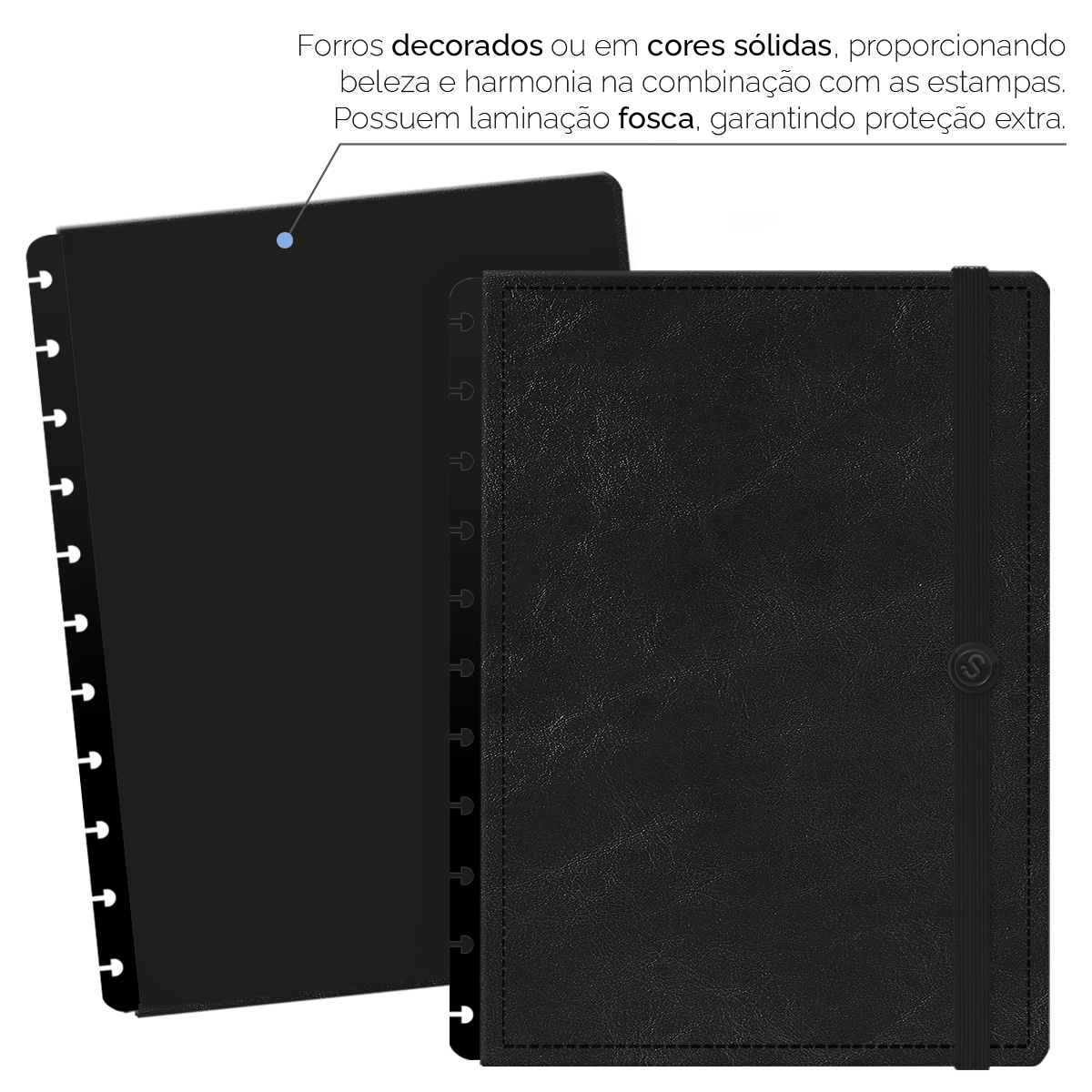 - Capa dura com acabamento premium, costurada e com espessura de 2,1 mm.