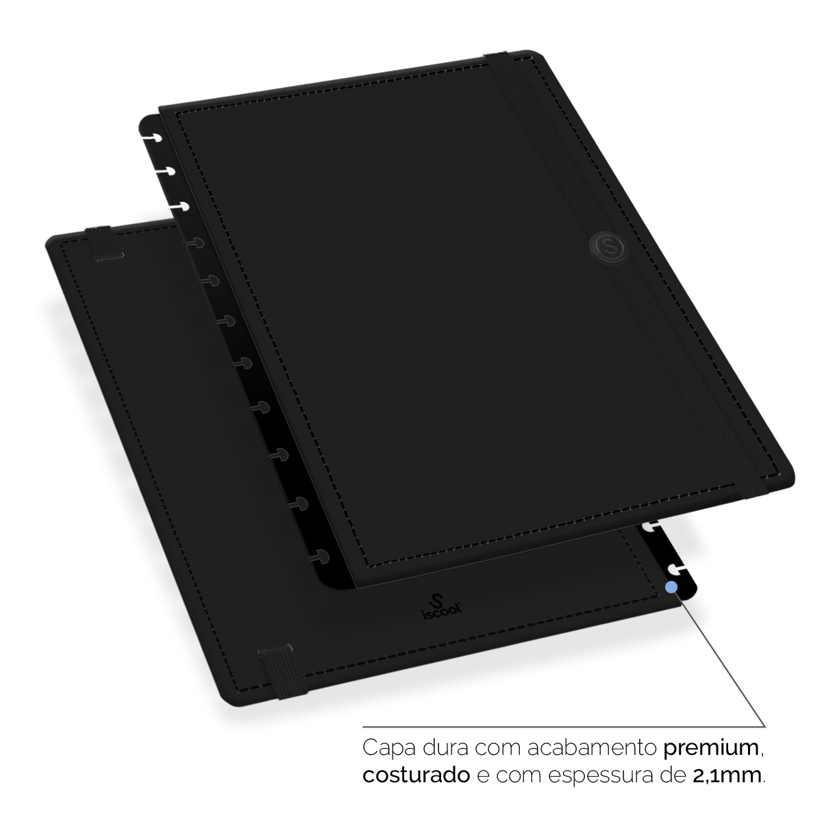 - Capa dura com acabamento premium, costurada e com espessura de 2,1 mm.