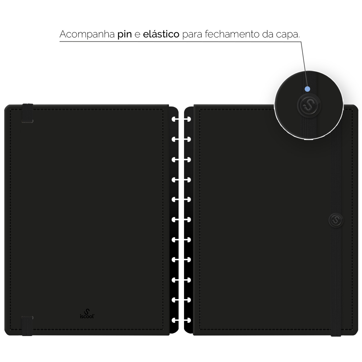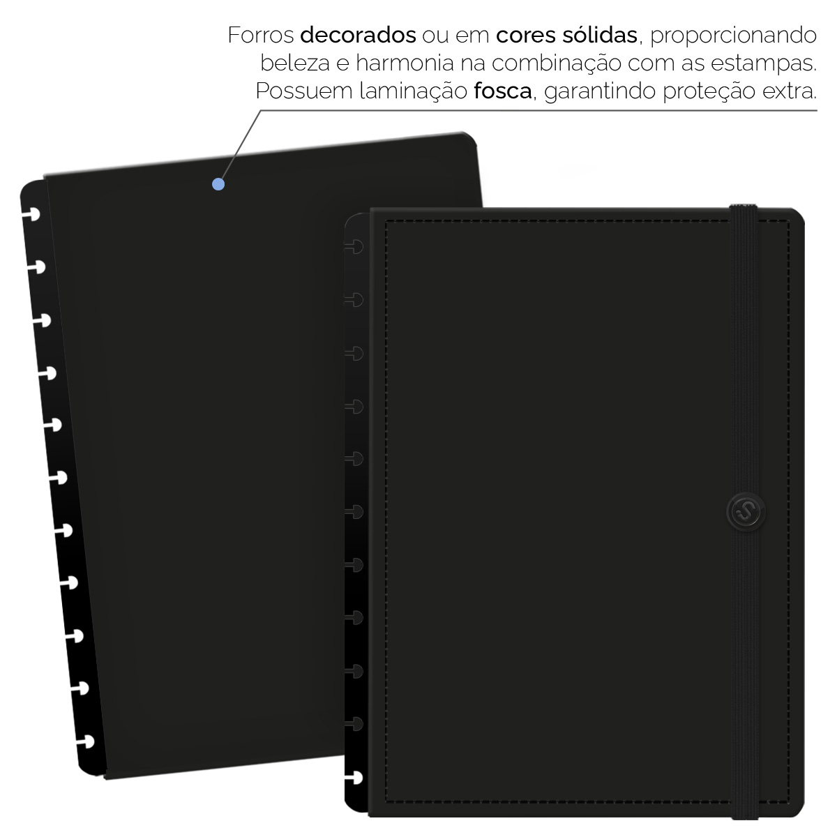 Com as capas iscool Prime, você pode renovar a “cara” do seu caderno de disco sempre que desejar! A caixa inclui capa e contracapa, além de extras que fazem toda a diferença: elástico para fechamento da capa, folha de dados e calendário.