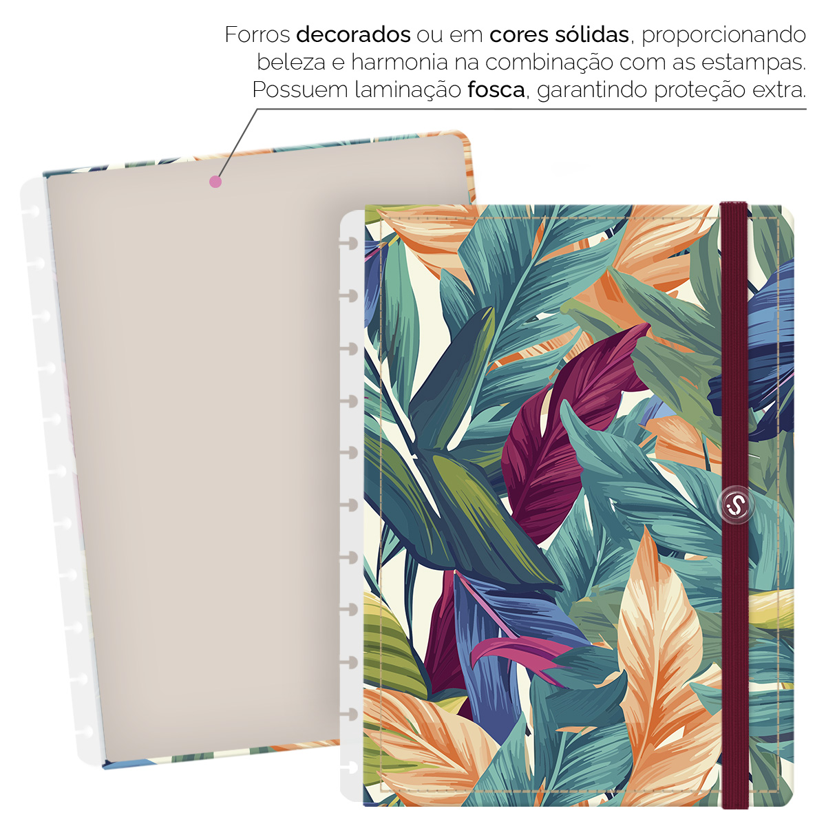 - Forros decorados ou em cores sólidas, com laminação fosca, garantem proteção extra.