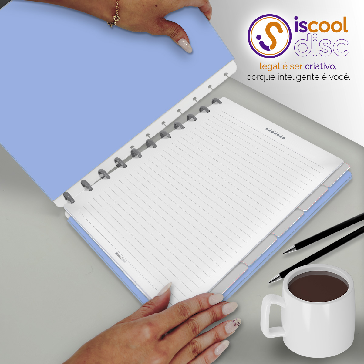 Com as capas iscool Prime, você pode renovar a “cara” do seu caderno de disco sempre que desejar! A caixa inclui capa e contracapa, além de extras que fazem toda a diferença: elástico para fechamento da capa, folha de dados e calendário.