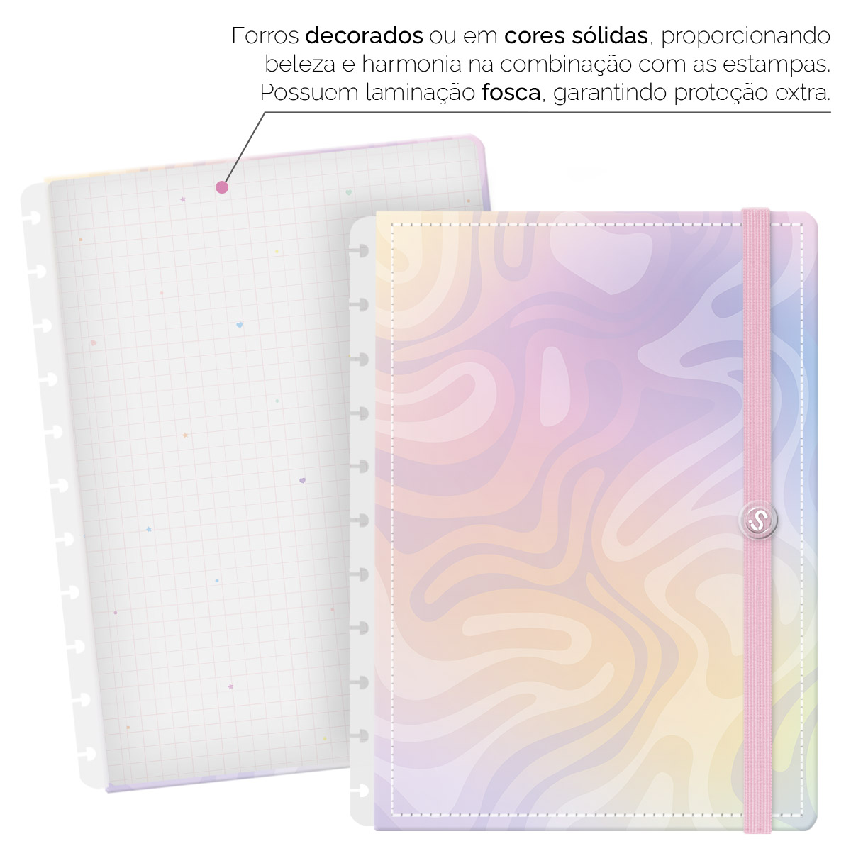 Com as capas iscool Prime, você pode renovar a “cara” do seu caderno de disco sempre que desejar! A caixa inclui capa e contracapa, além de extras que fazem toda a diferença: elástico para fechamento da capa, folha de dados e calendário.