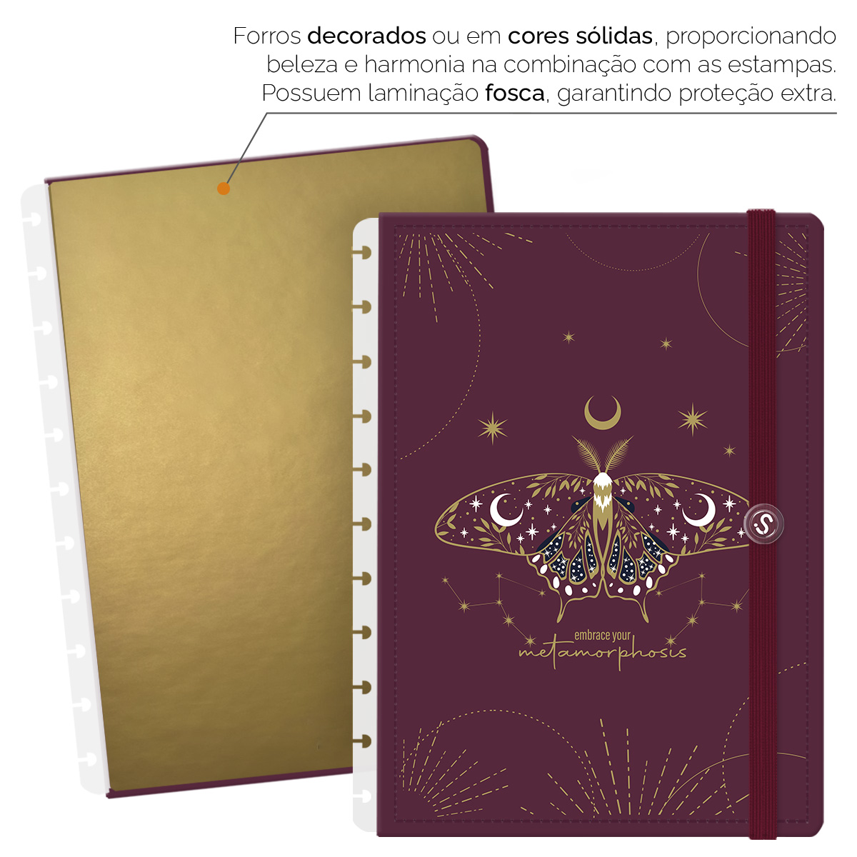 - Forros decorados ou em cores sólidas, com laminação fosca, garantem proteção extra.