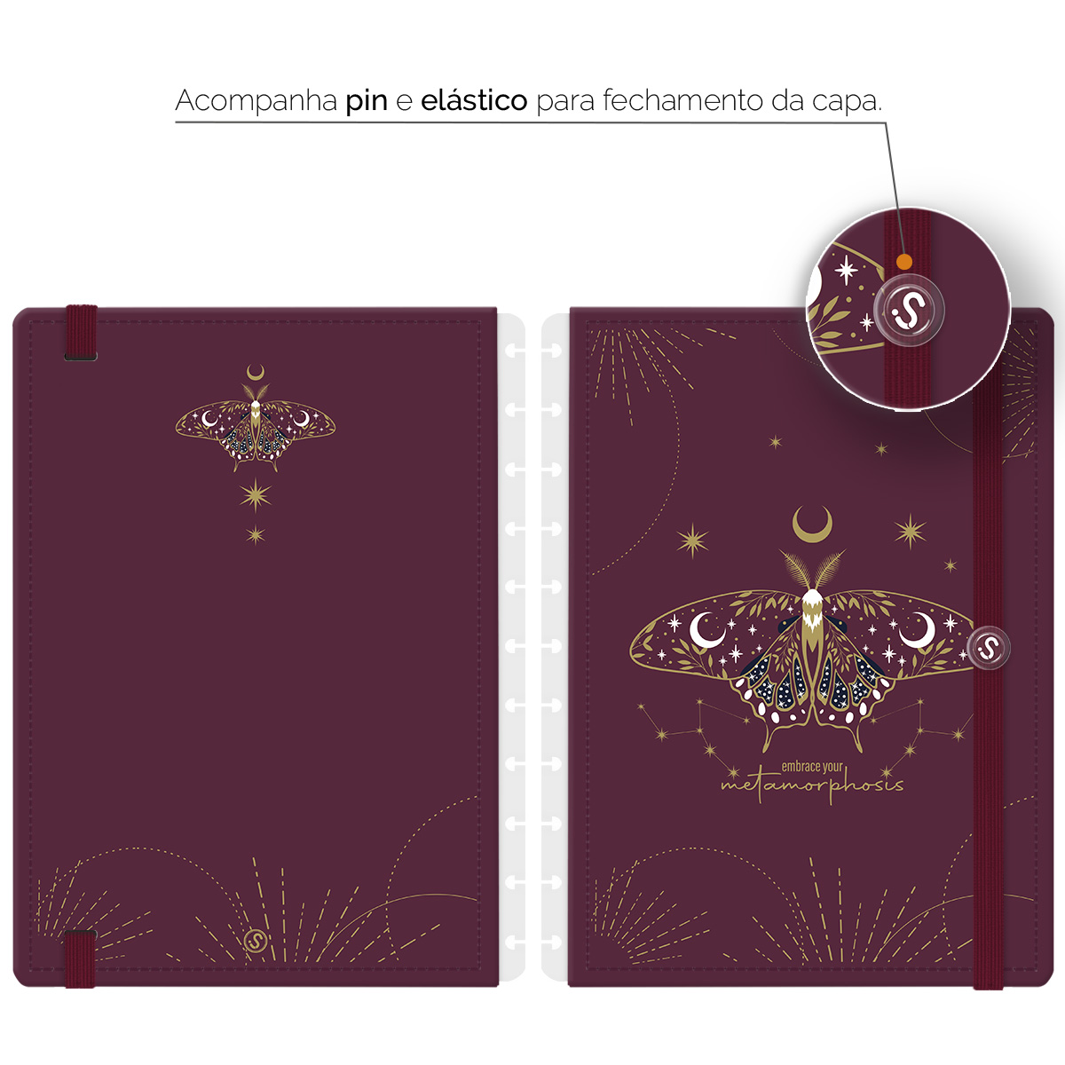 - Acompanha elástico e pin.