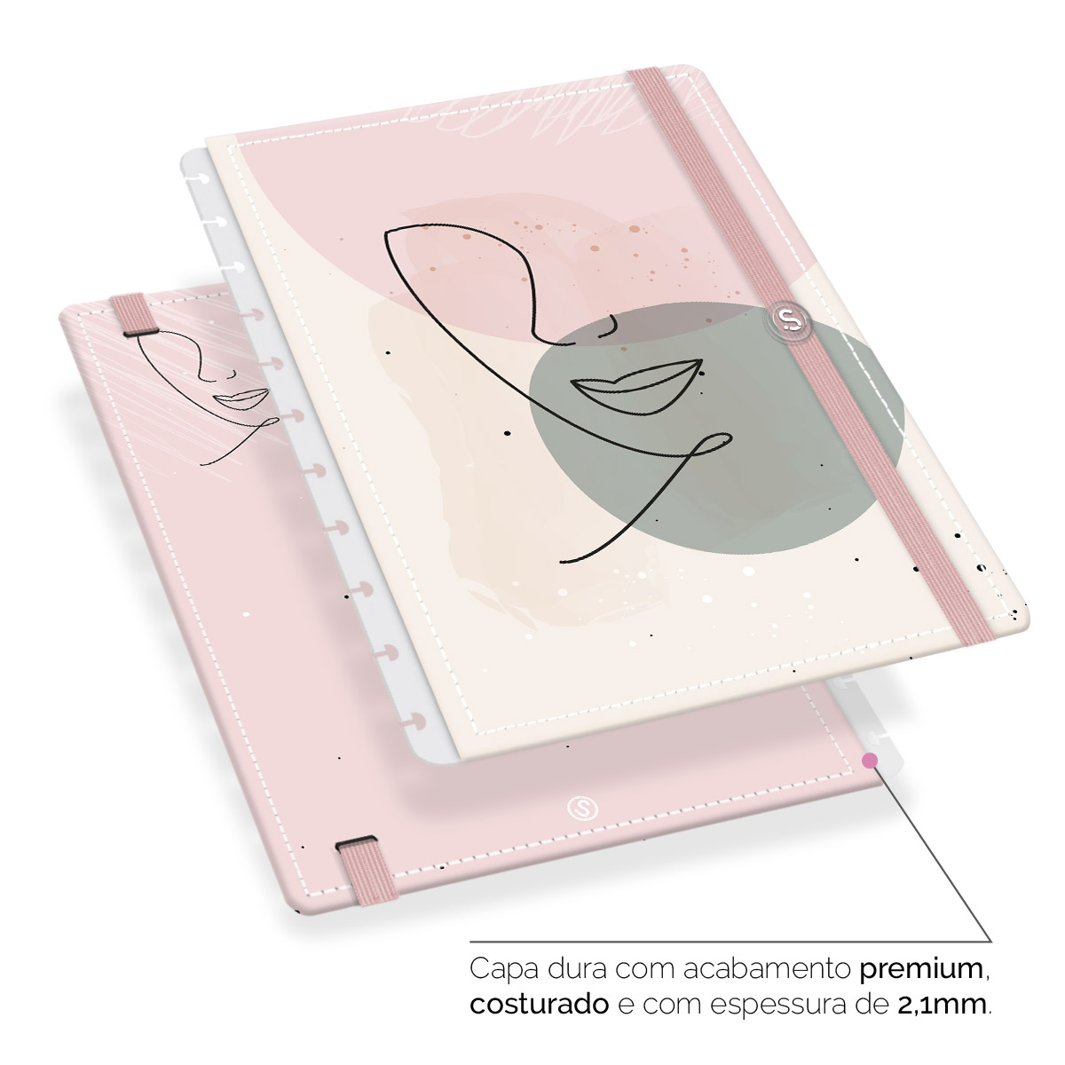 - Capa dura com acabamento premium, costurada e com espessura de 2,1 mm.