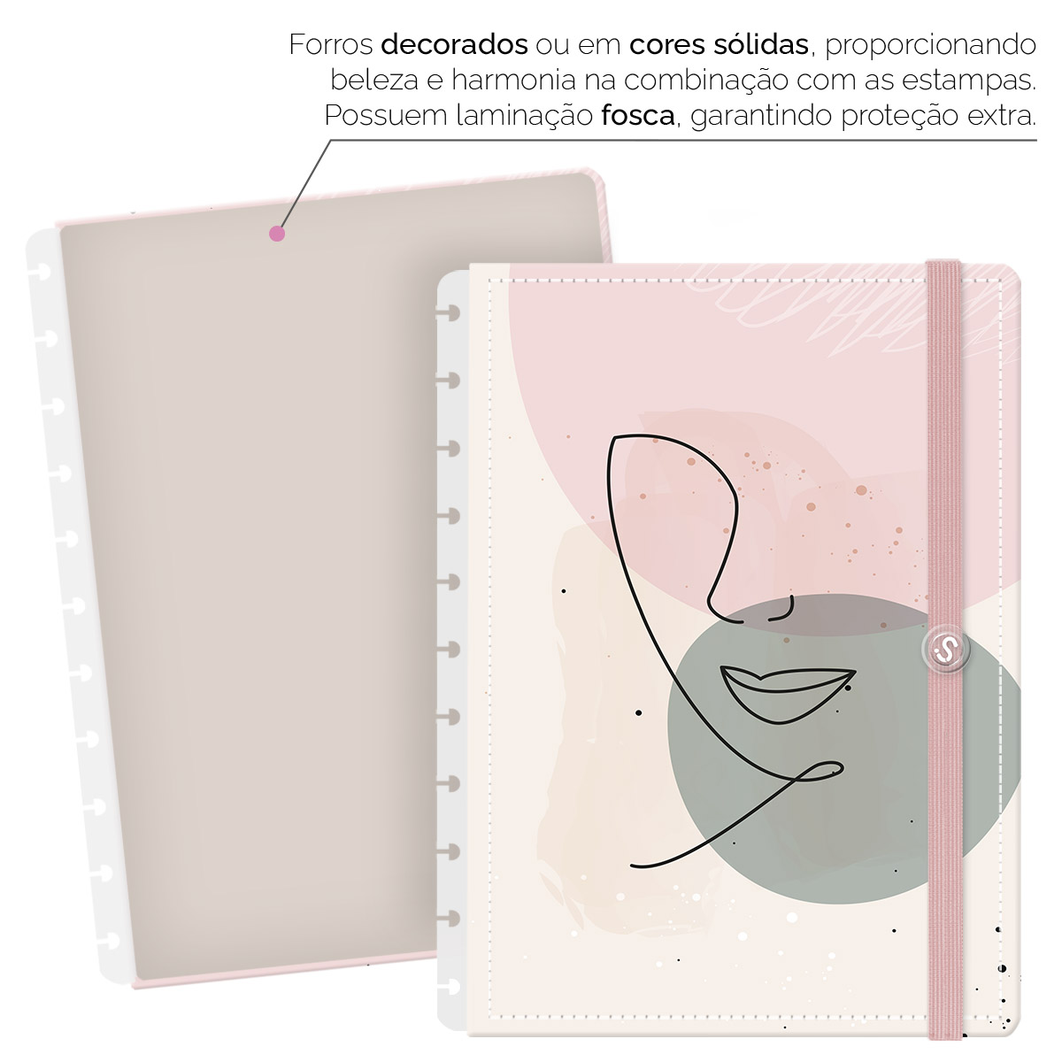- Forros decorados ou em cores sólidas, com laminação fosca, garantem proteção extra.